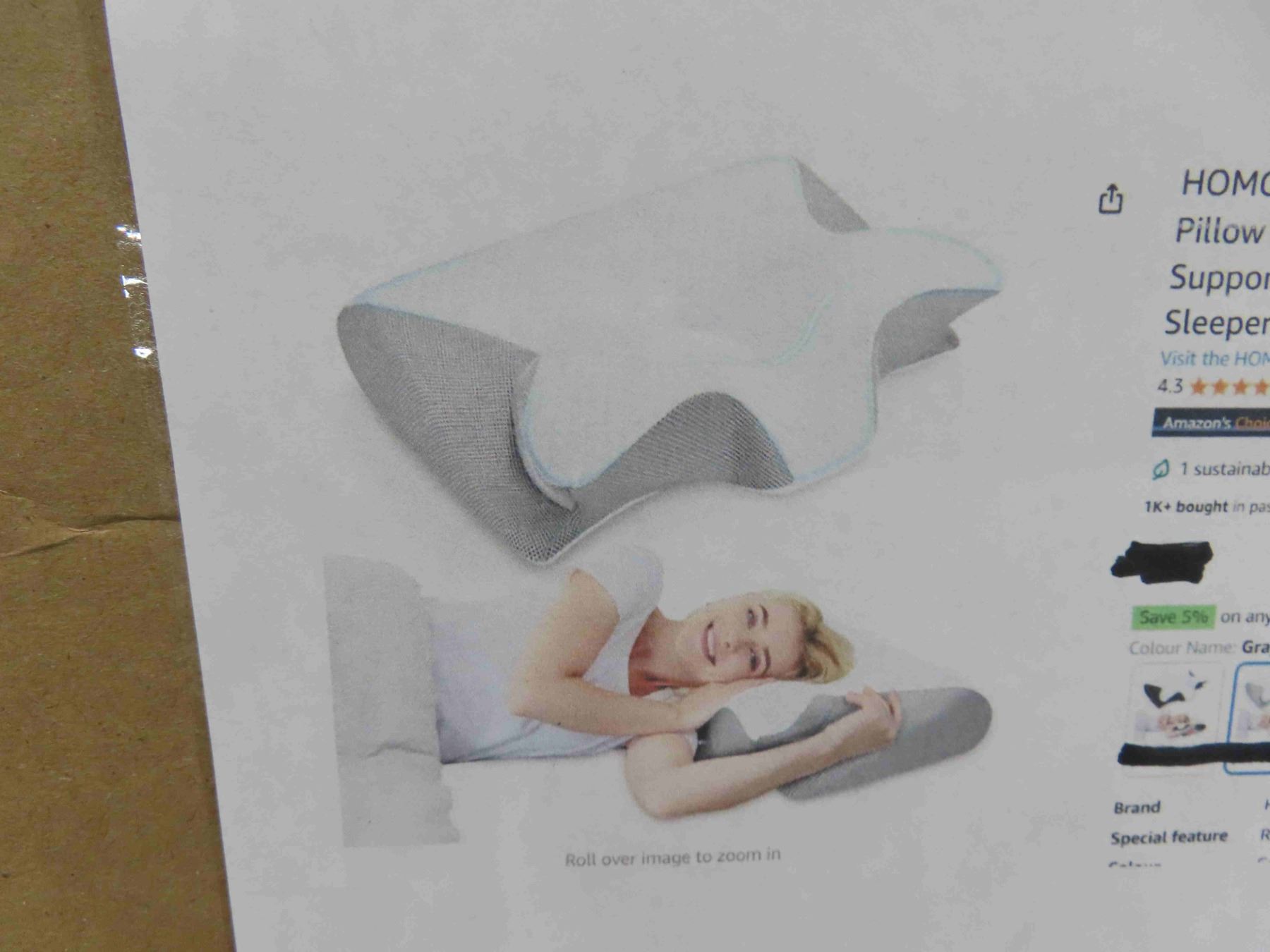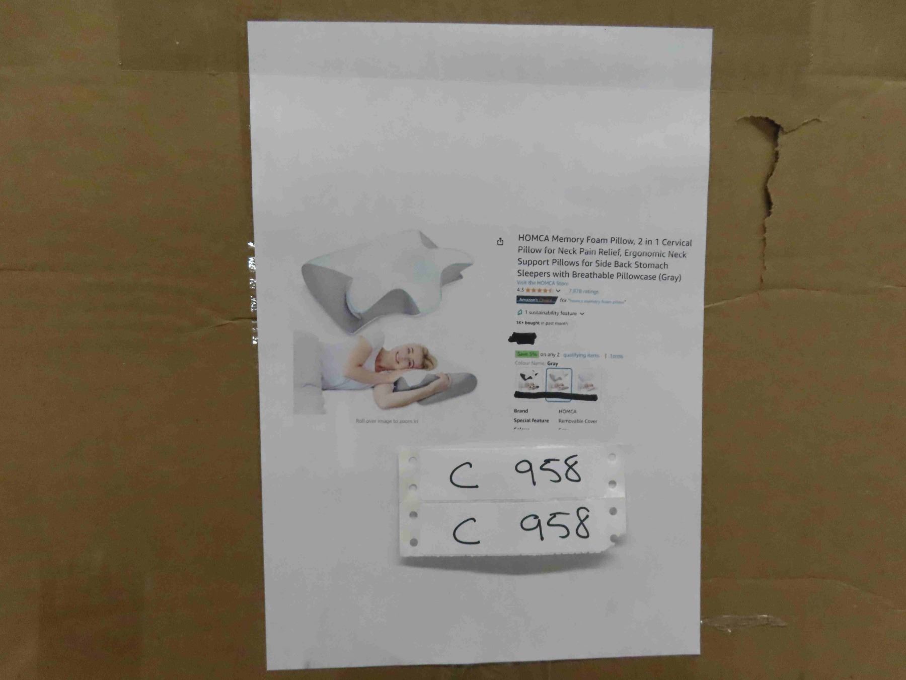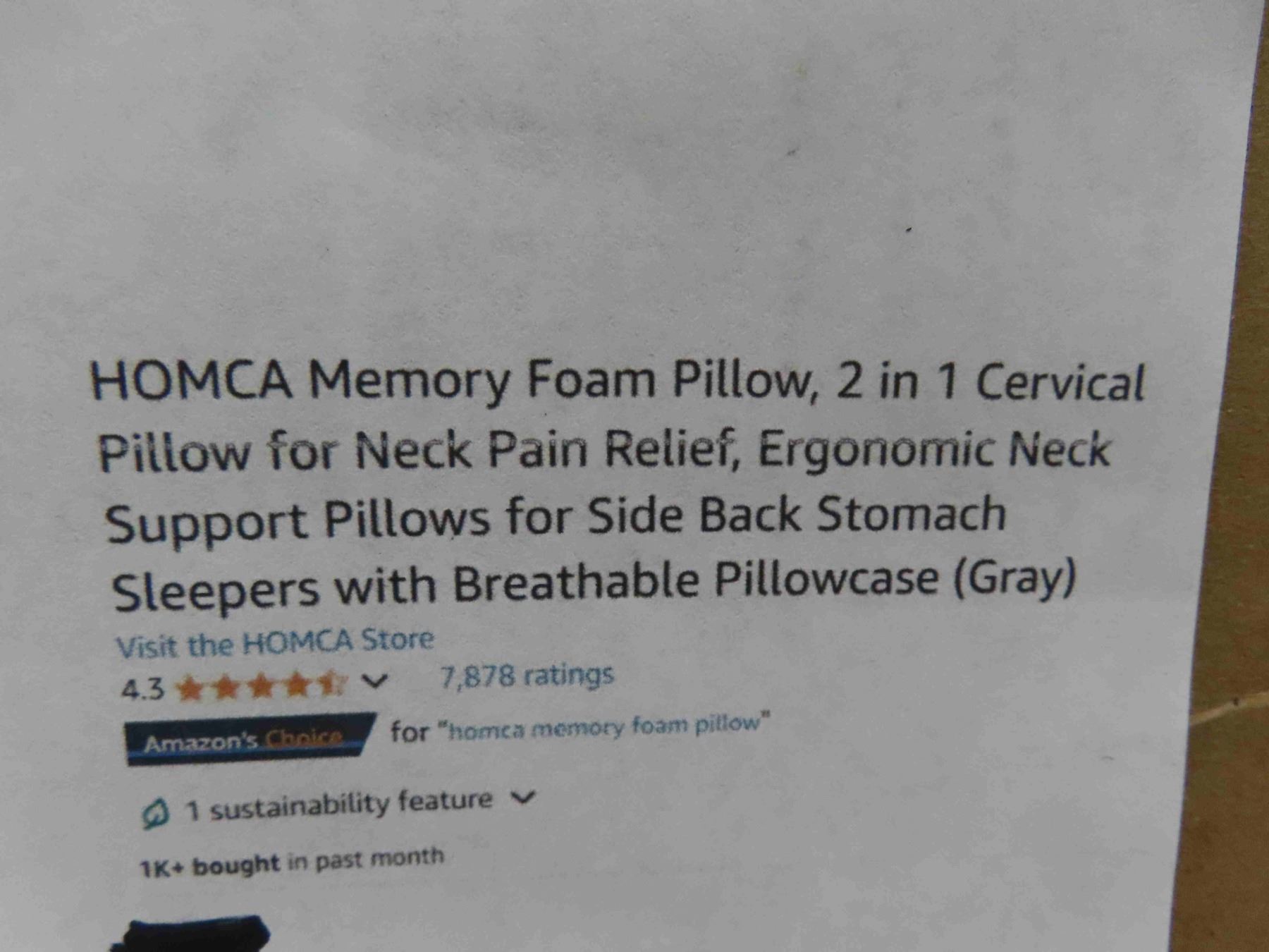 Homca Memory Foam Pillow , 2 in 1 Cervical Pillow for Neck Pain Relief, Ergonomic Neck Support Pillows for Side/Back/Stomach Sleepers with Breathable Pillowcase (Gray) - New or Store Return