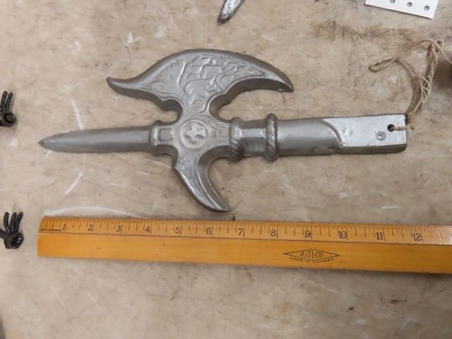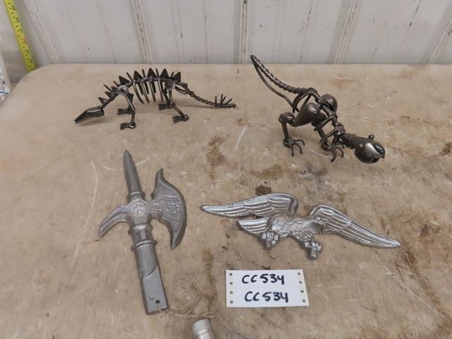 Home Made Scrap Metal Dinosaurs 13" on Longest , 2 Aluminum Décor Items ; Eagle + Axe Head