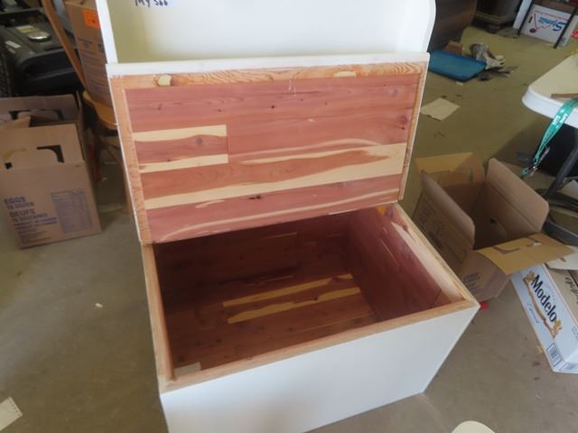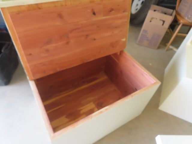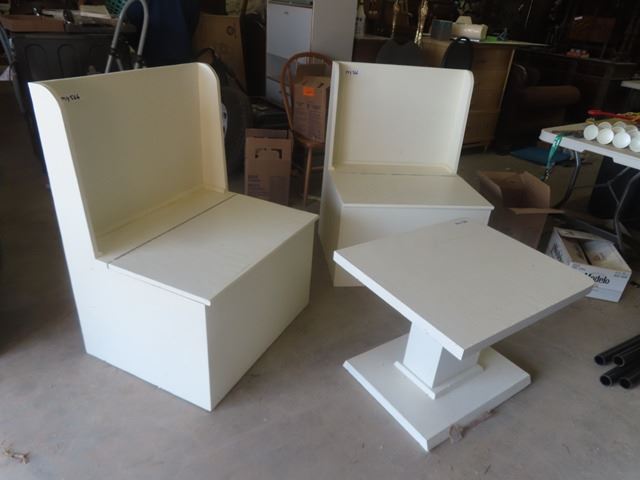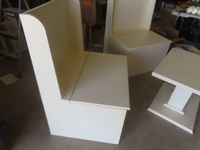Home Made Wooden Benches with Storage & Table - Benches are Cedar Lined 24" x 30" x 40" - Table 20" x 23" x 29"