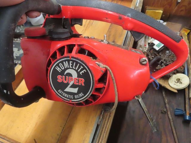 Homelite Super 2 Chainsaw for Parts! - Sharpener + Extra Chain in Wooden Box