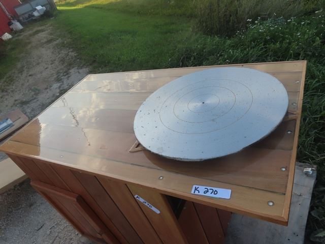 Homemade Potters Wheel on Cabinet with Clay & Accessories