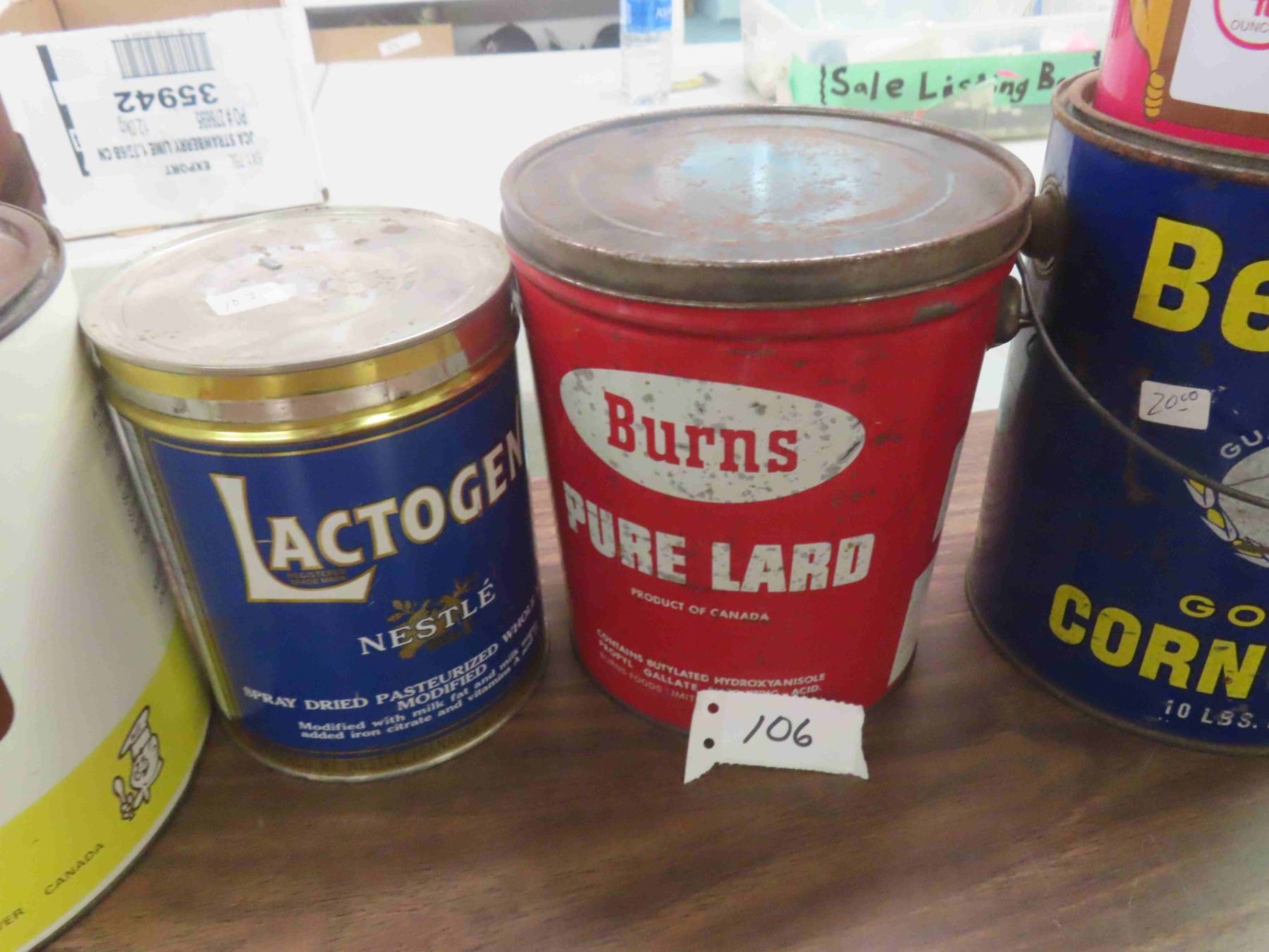 Honey, Peanut Butter, Lard, Syrup Tins, plus more