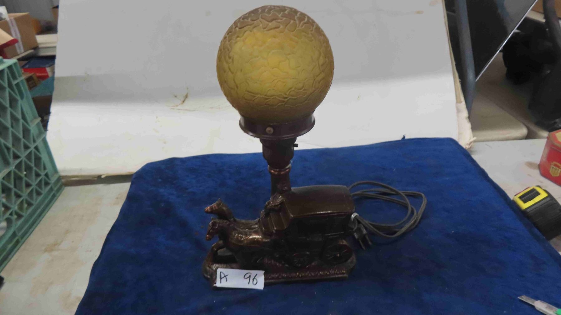 Horse + Carriage Table Lamp - Nice Shade / Globe