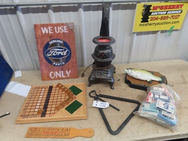 Horse Derby Game, Ceramic Pot Belly Heater Lamp , Dinner Bell & Ford Sign Plus More!
