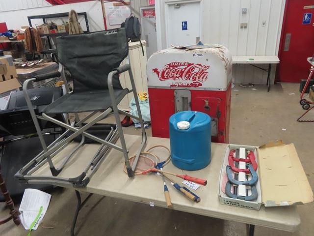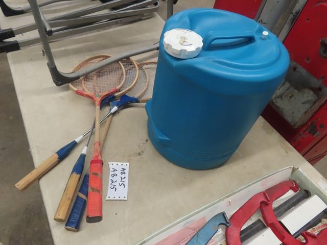 Horse Shoe Game, 2 Folding Chairs, Water Jug, Badmintion Rackets