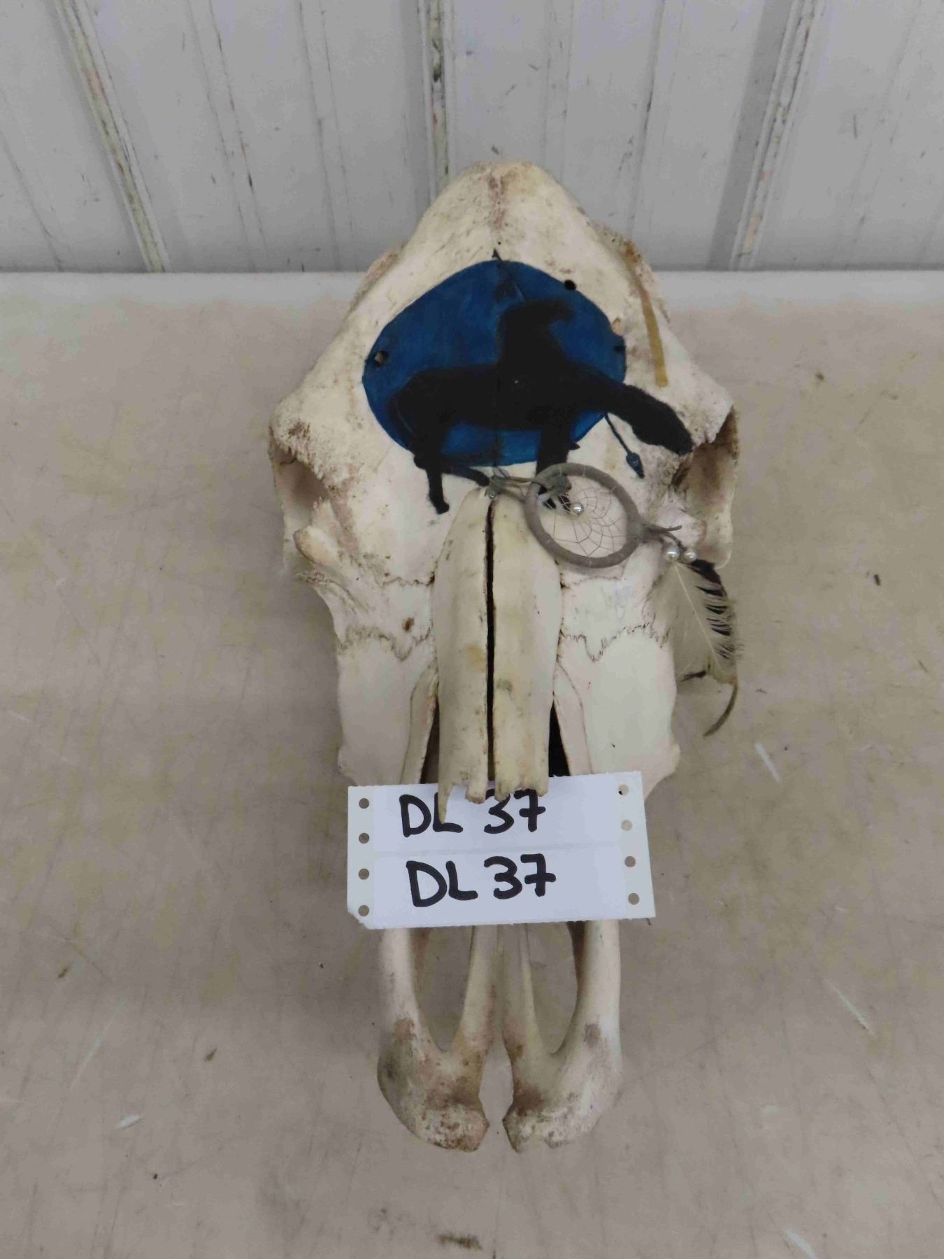 Horse? Skull with Art Work 19'' Long
