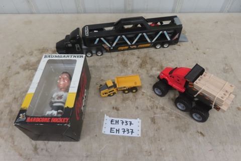 Hot Wheels Cargo Carrier, Nolan Baumgartner Bobble Head, 2 Toy Trucks