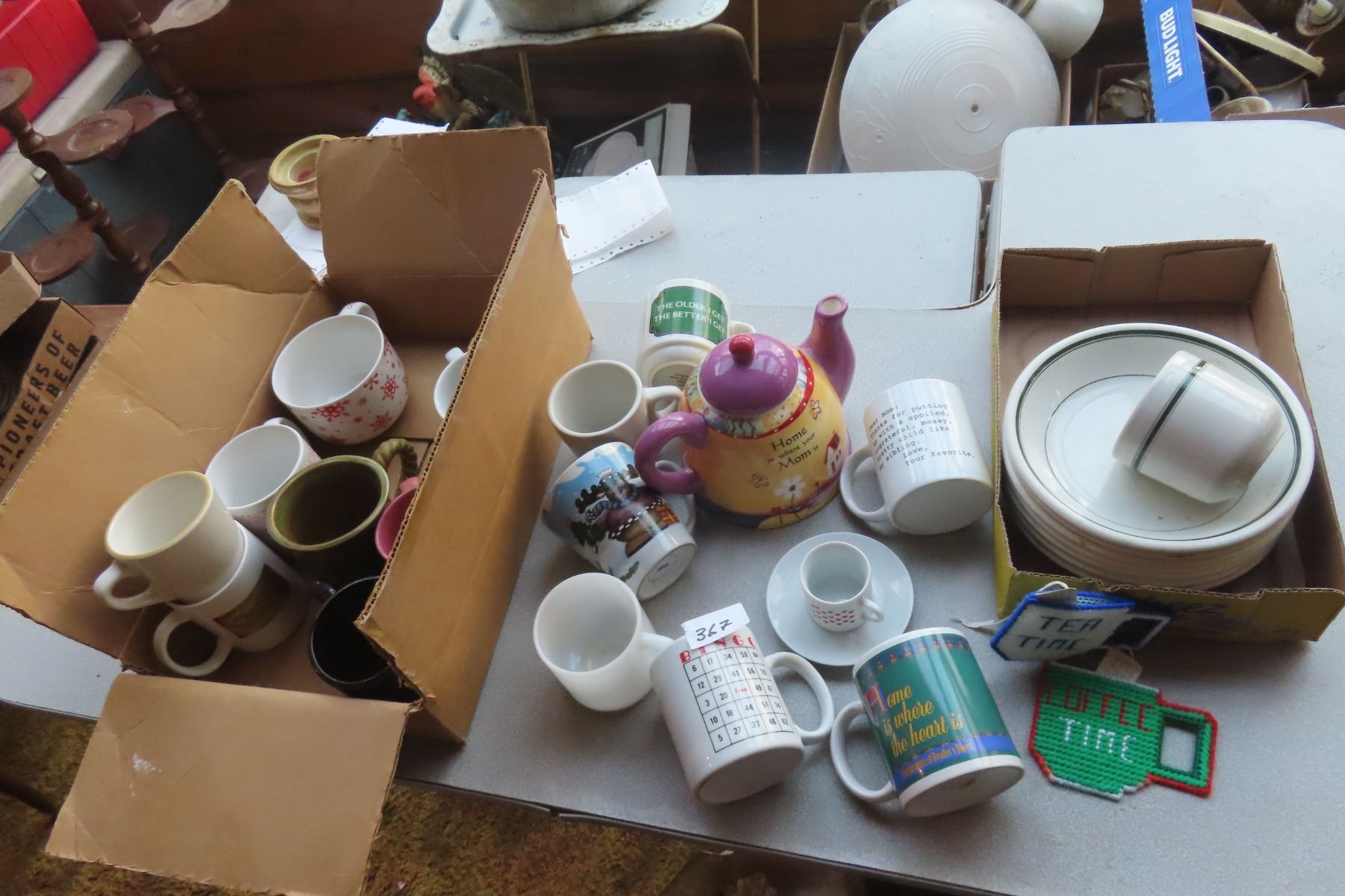 Hotelware Teapot, Coffee Cups, Bowls. Modern cups with Slogans