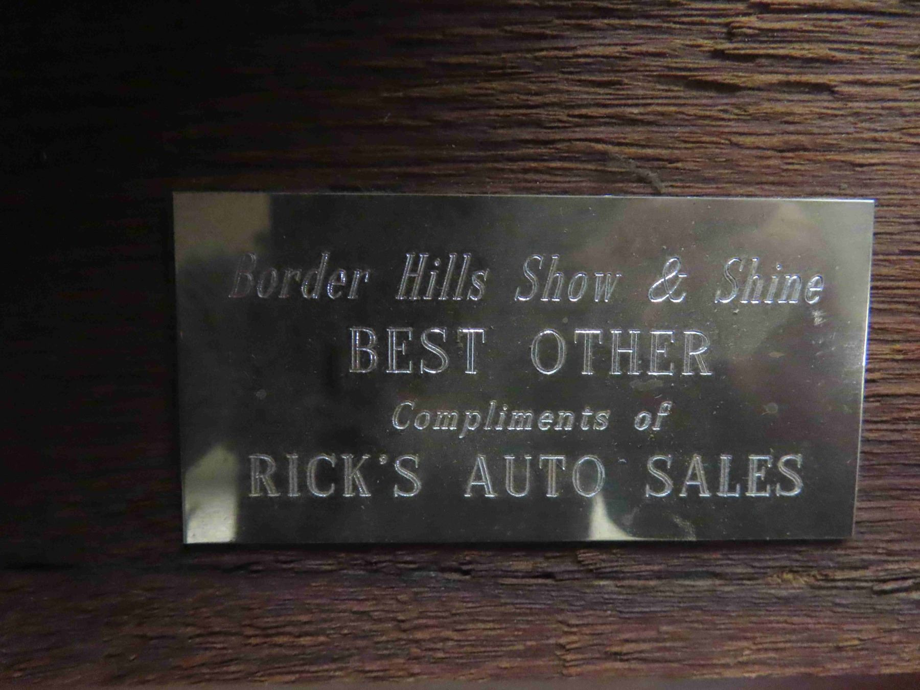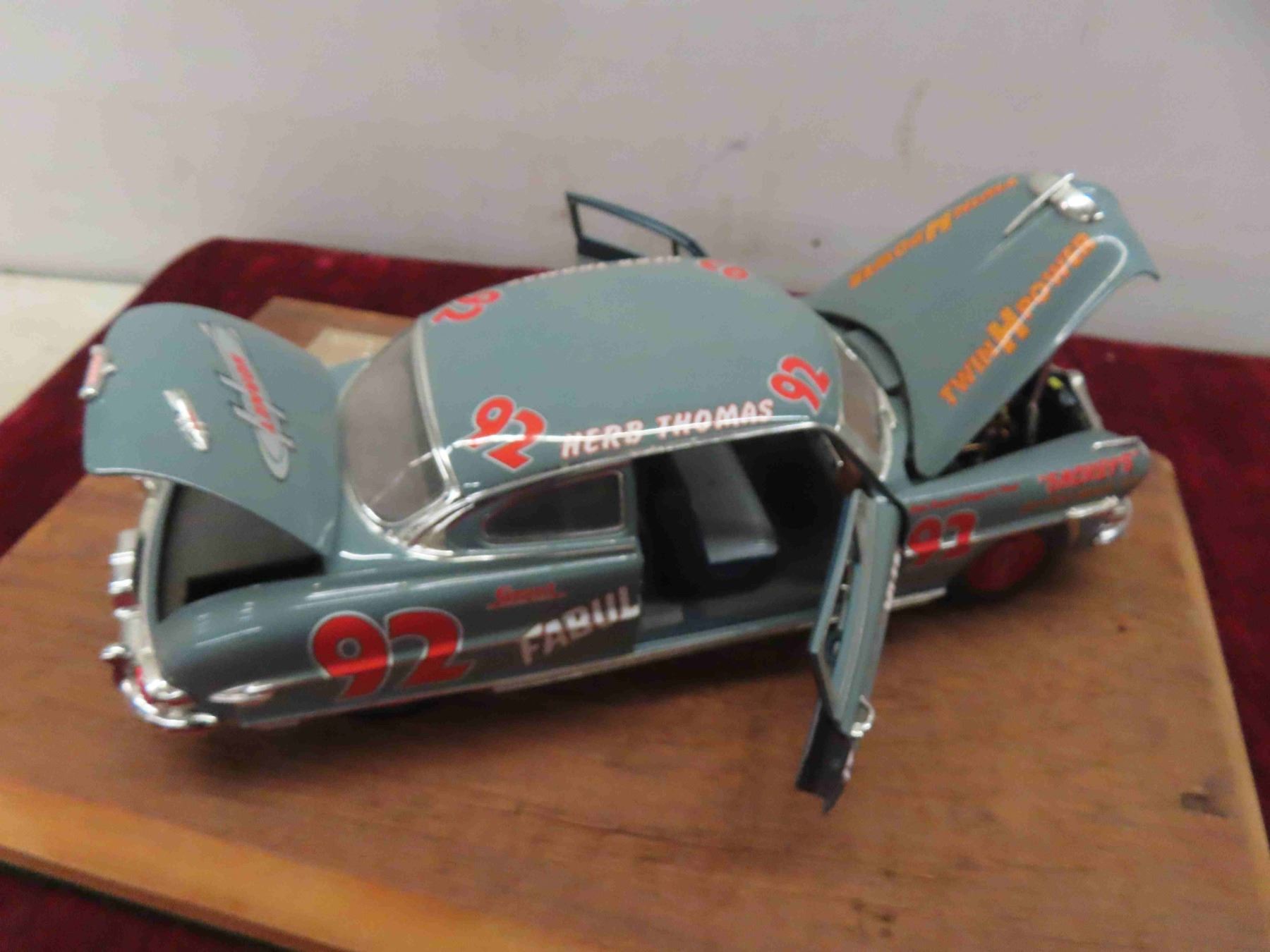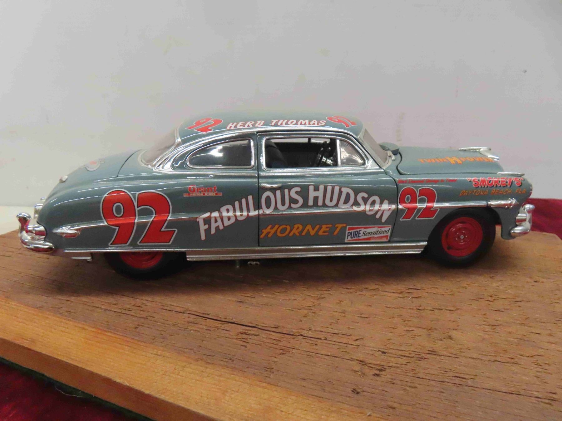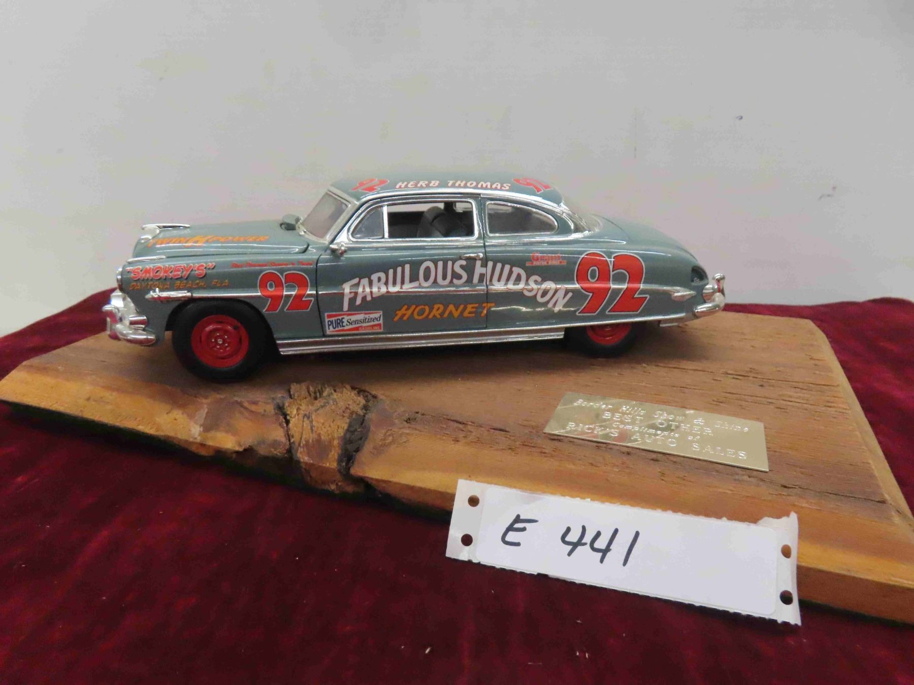 Hudson Hornet #92 Herb Thomas Diecast Car, Mounted with Plaque 'Border Hills Show and Shine'