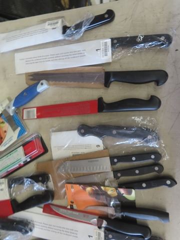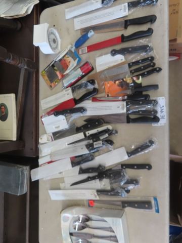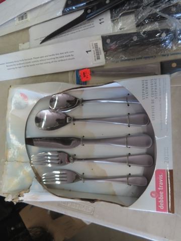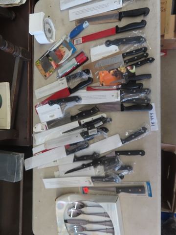Huge Lot of Knives 25 + some new in Plastic, 20 pc Debbie Travis Flatware Set