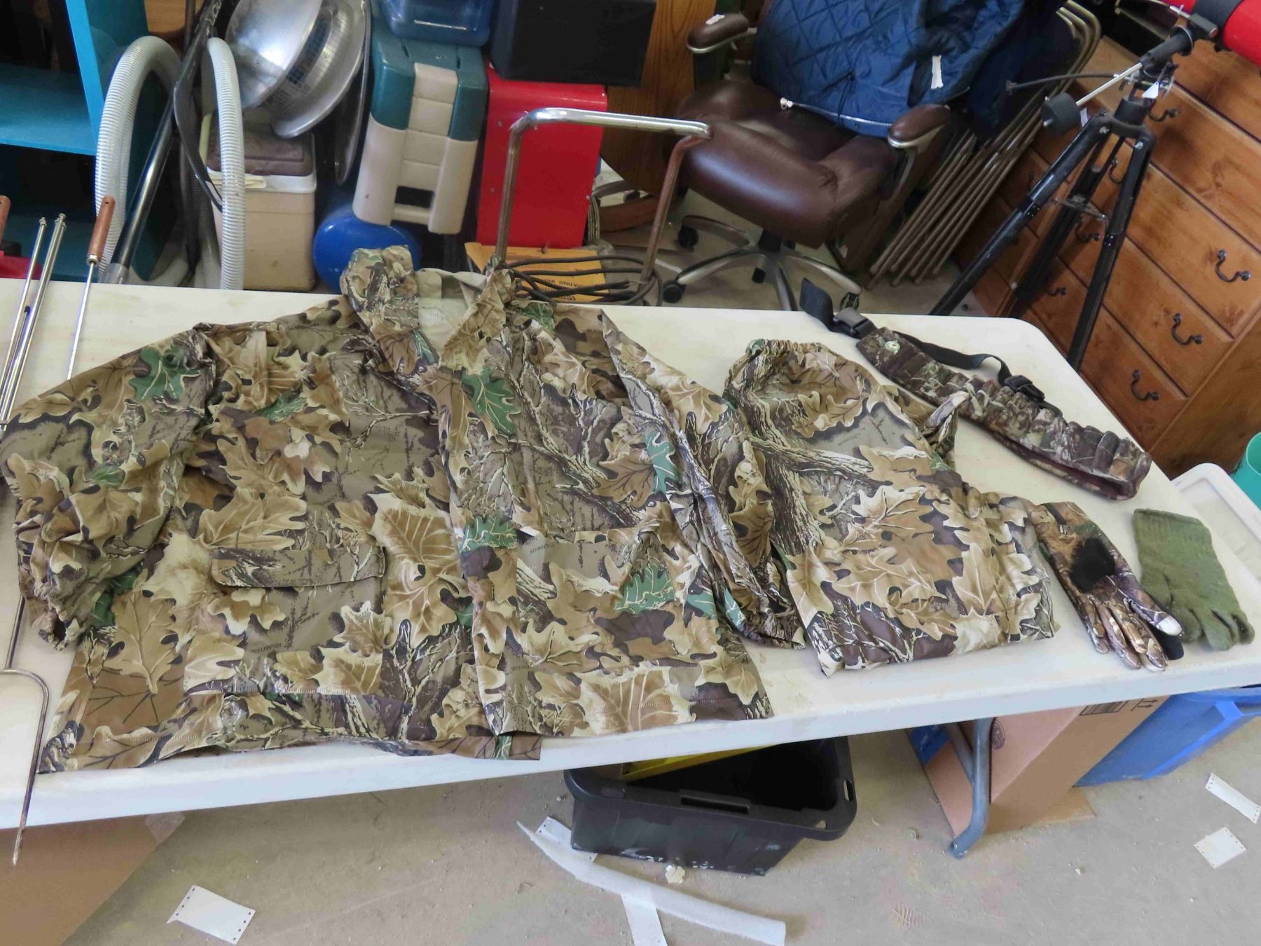 Hunting/Camo Waterpoof Jacket , Pants Size XXL, Gloves, Shotgun Shell Belt Holder