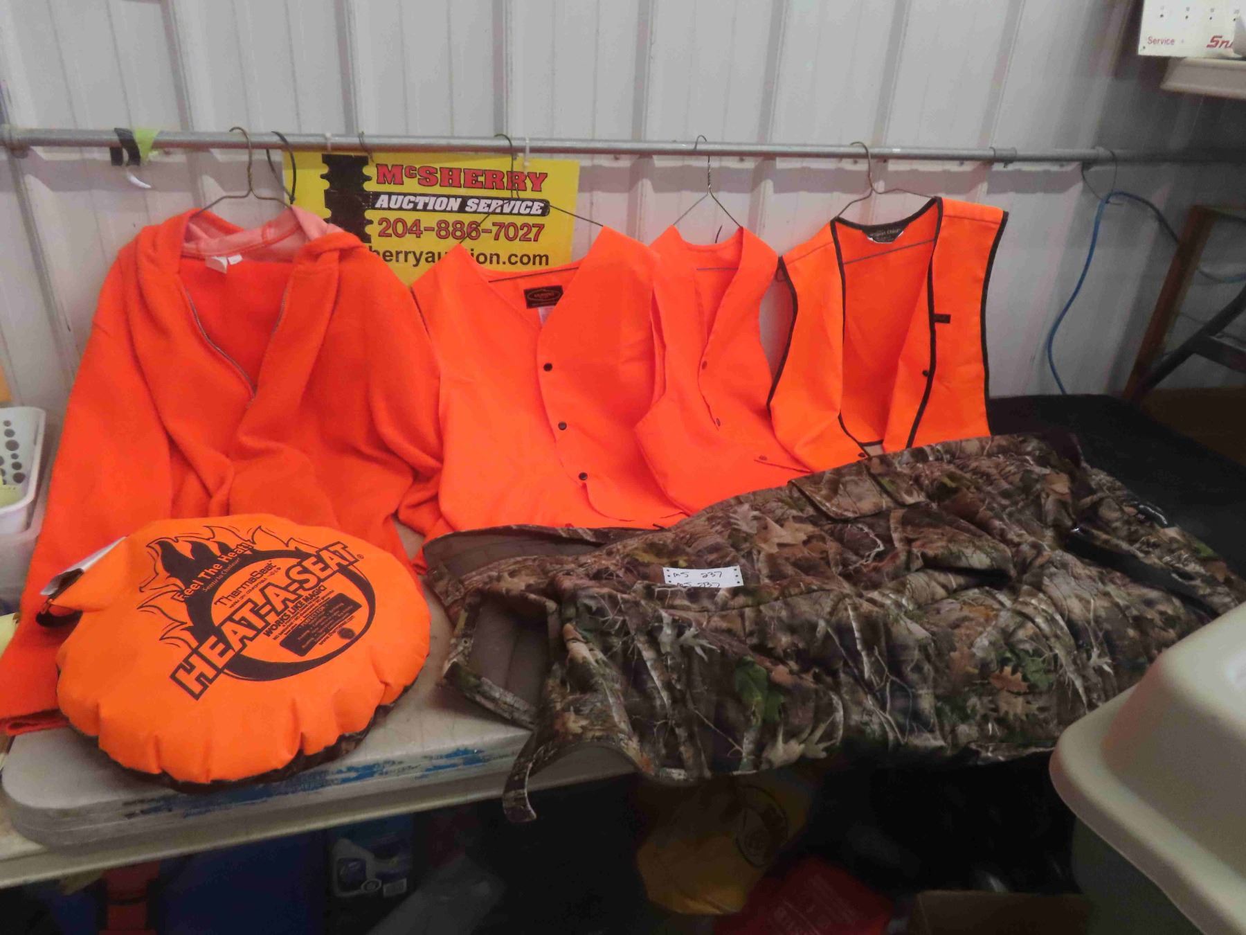 Hunting Hoodie and Pants Size XXL, 3 Orange Hunting Vests, Camo Insulated 3XL Pants, Tub