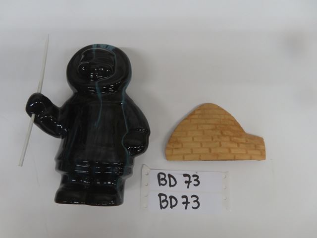 Huronia Pottery 7" Inuit Figure - Excellent Condition & Original Whale Bone Igloo Carving