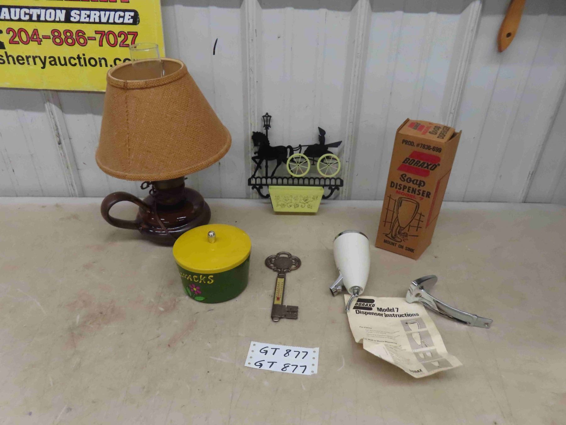 Hurricane Style Bedside Lamp, Soap Dispenser in Original Box, plus more