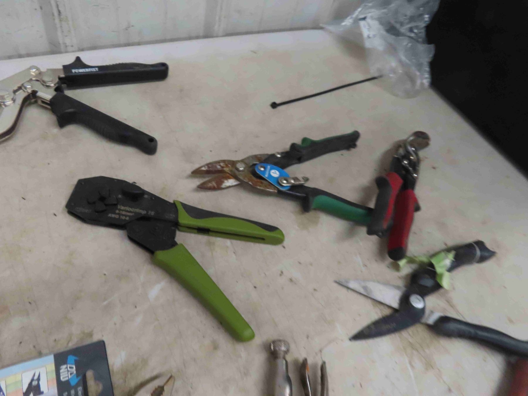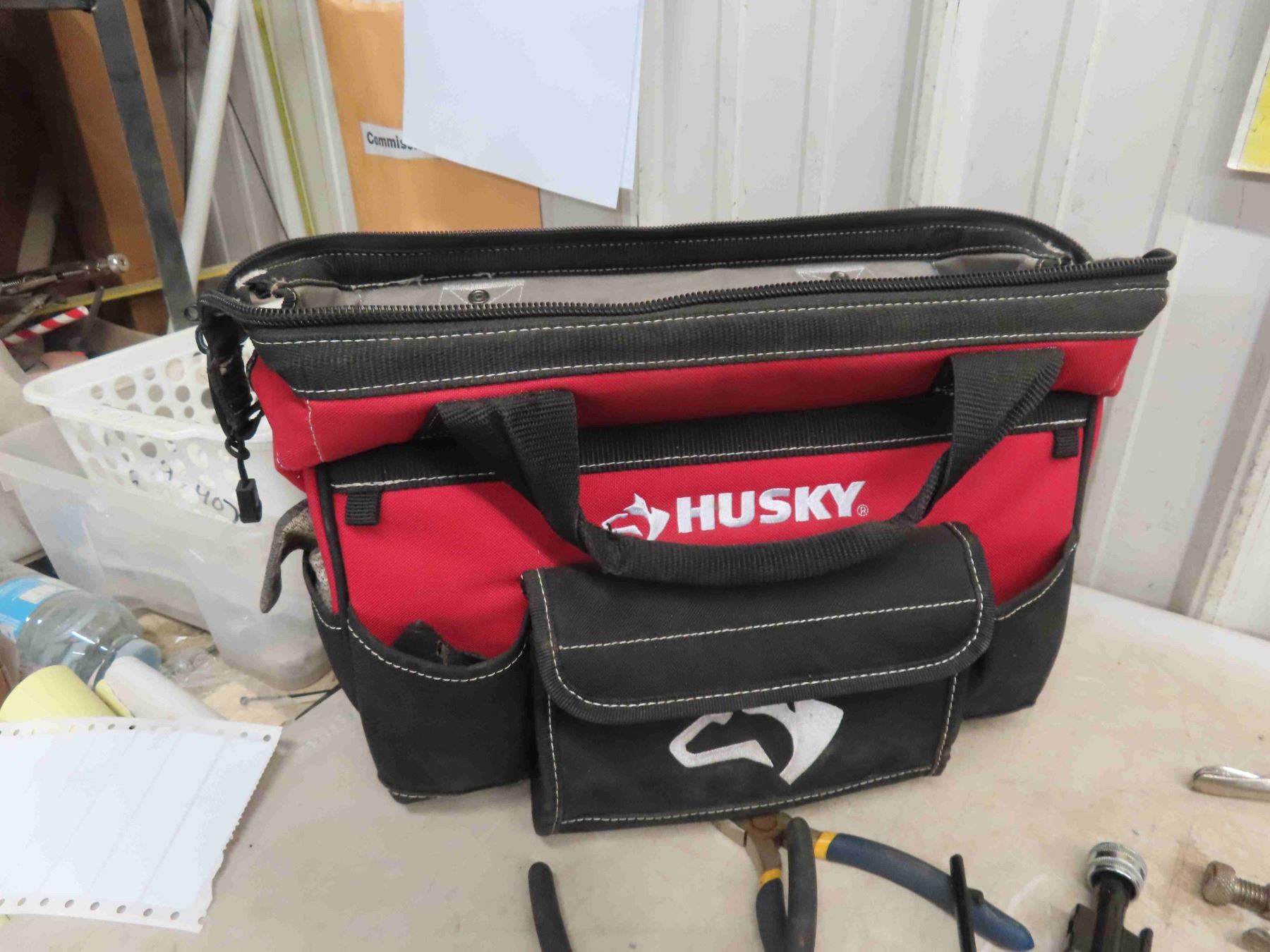Husky Tool Bag , Vice Grips, Snap Ring Pliers, Crimper, Tin Snips