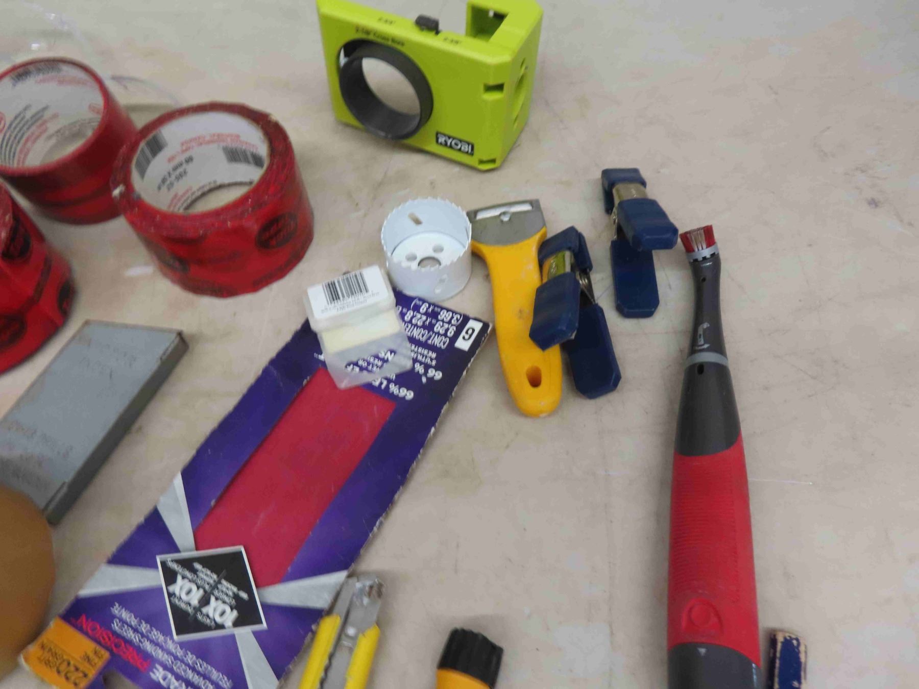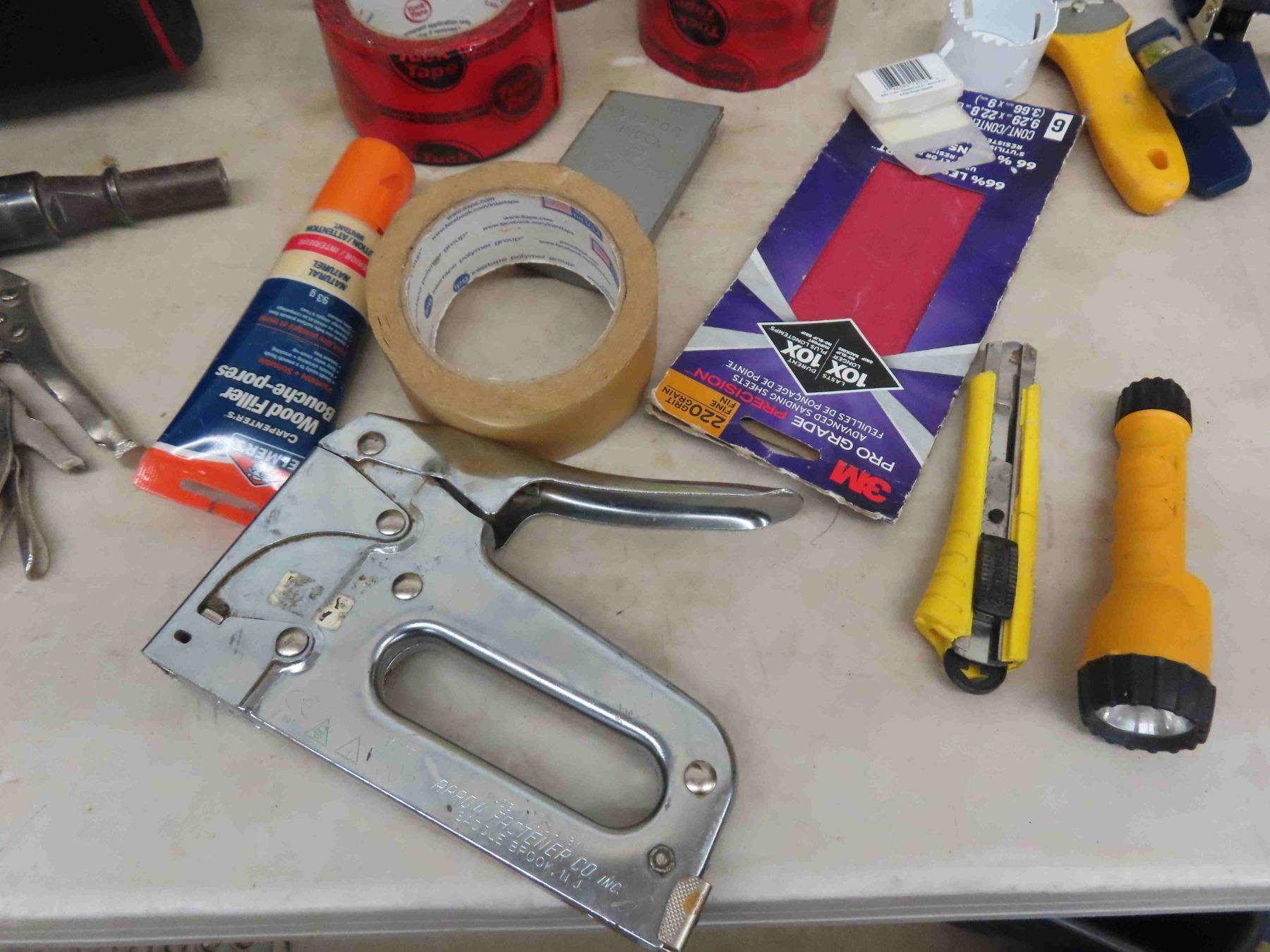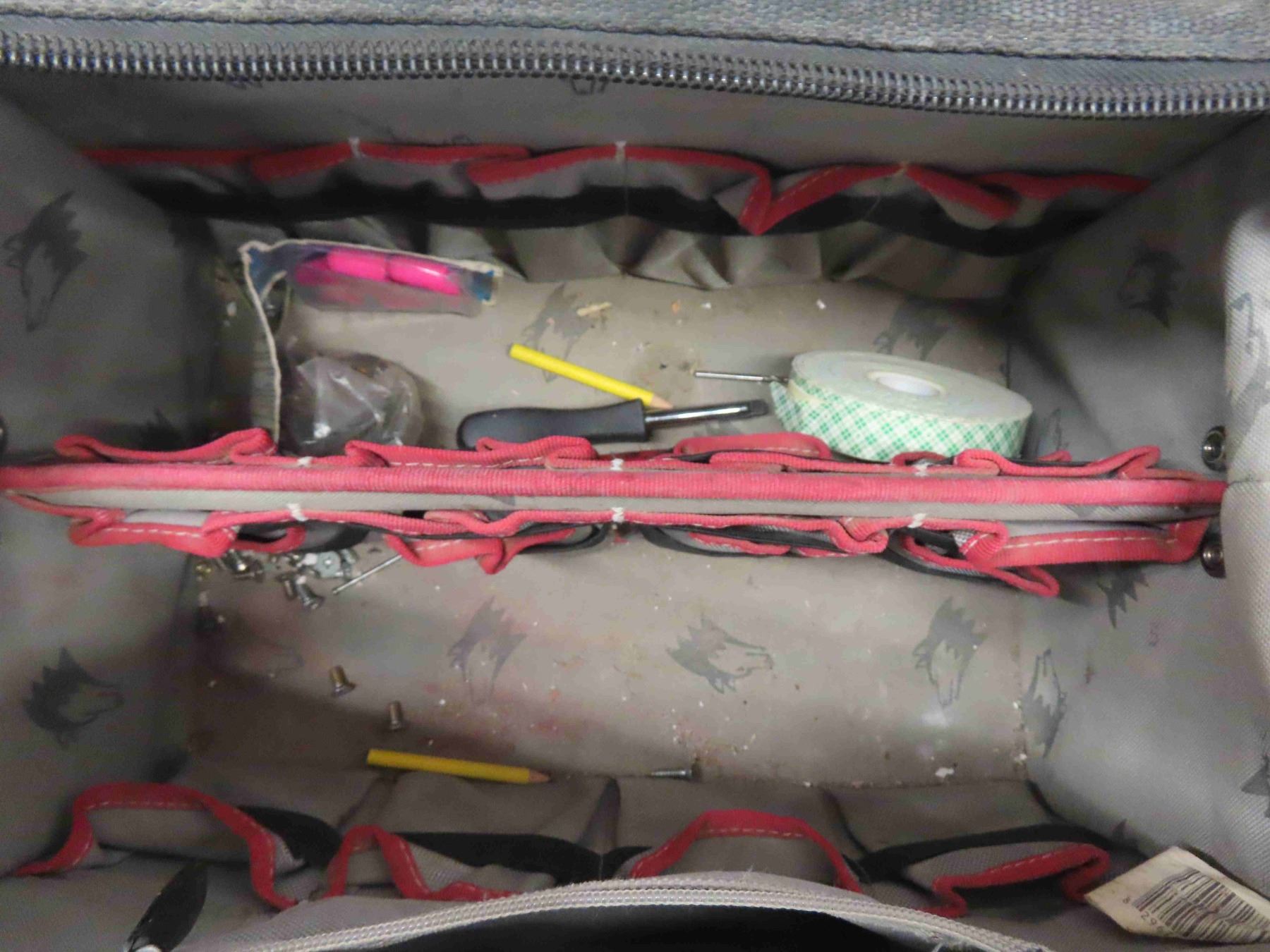 Husky Tool Bag with Assosrted Goodies ; Ramset Concrete Nailer, Stapler, Safety