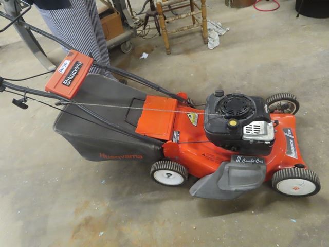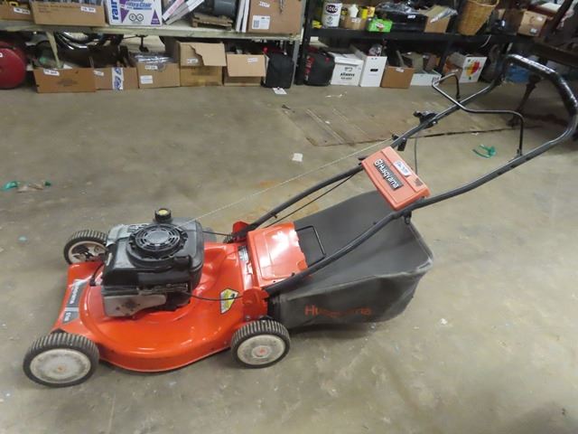 Husquavarna 51cc Mower with Bagger - Needs Carb Cleaning - Gas Pour Directly behind Spark Plug - it Runs