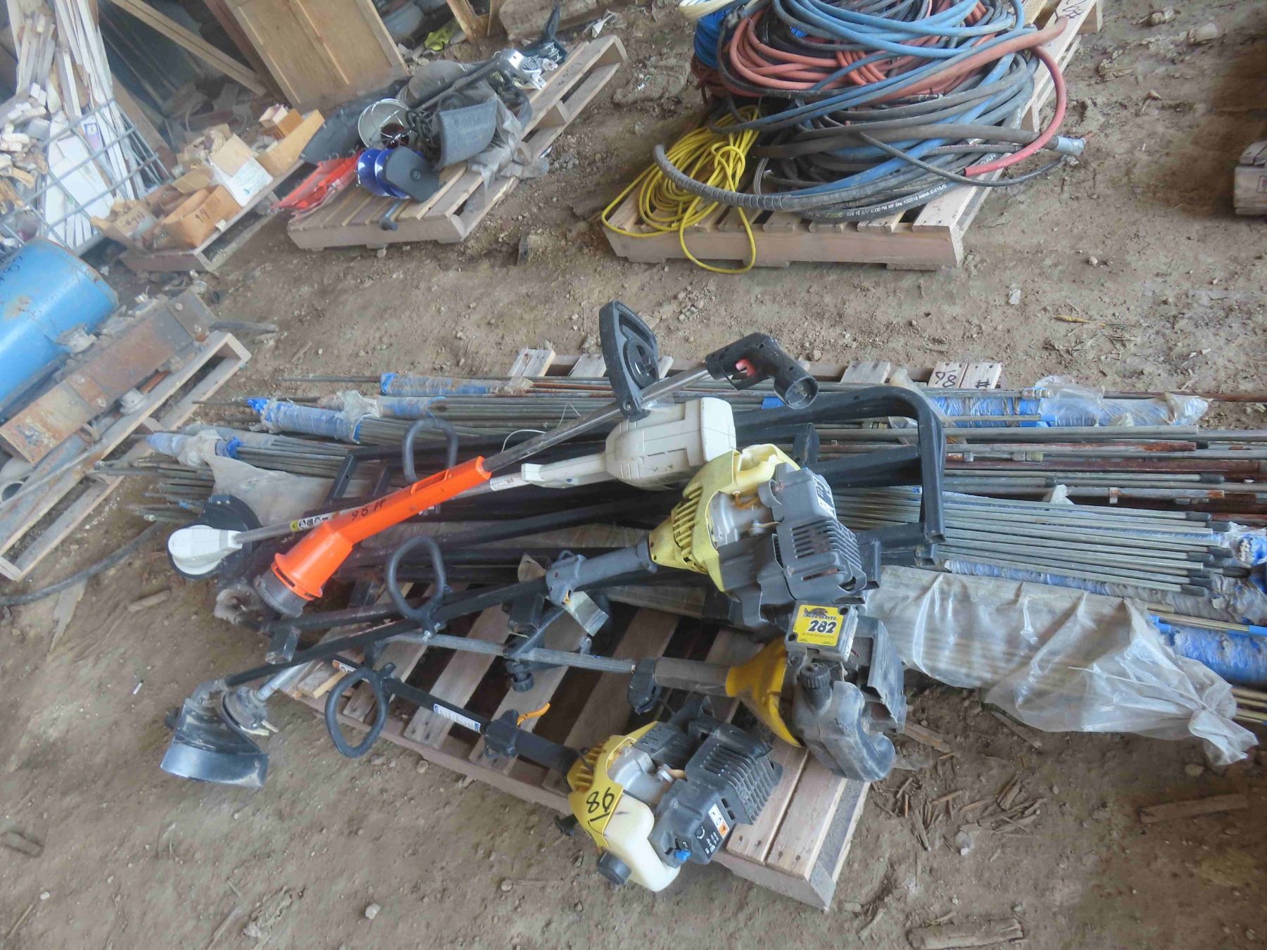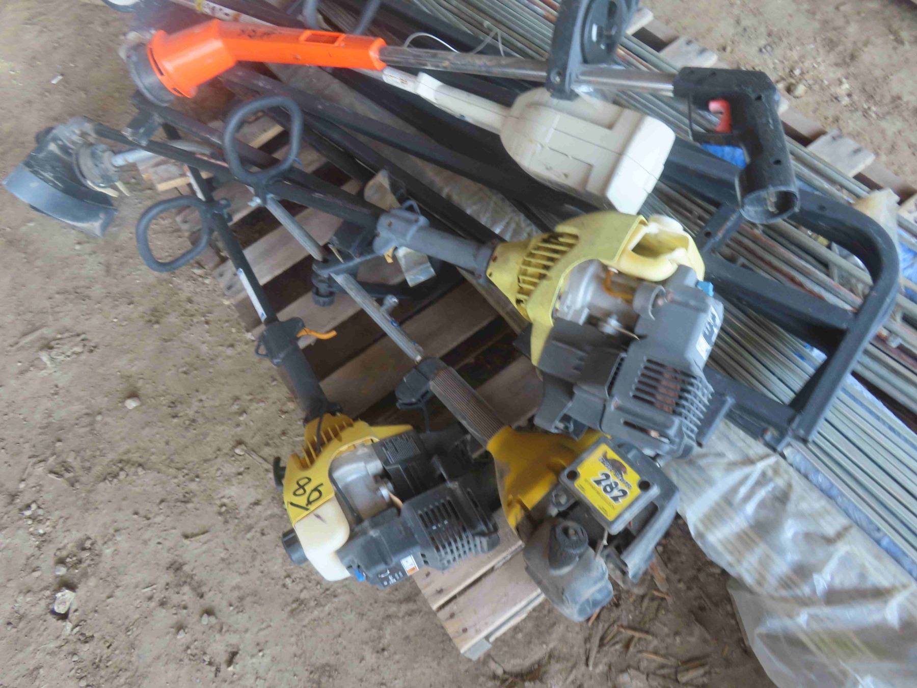 Hydraulic Rods & Weed Trimmers : (2) Gas, (1) Battery, (1) Electric. (CONDITION UNKNOWN)