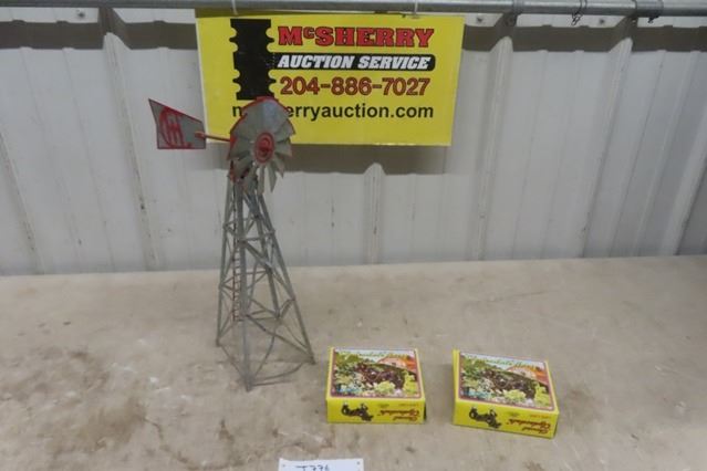I.H.C. Metal Mini Windmill, 2 Life Like Model Plastic Horses in Boxes
