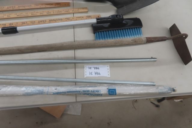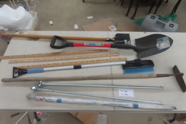 Ice Chopper, Spade Hoe, 3 Yard Sticks, 2 Pieces Threaded Rod, Snow Brush