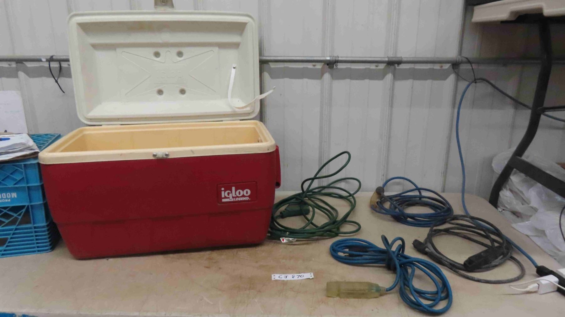 Igloo Cooler with Broken Handle, 4 Extension Cords