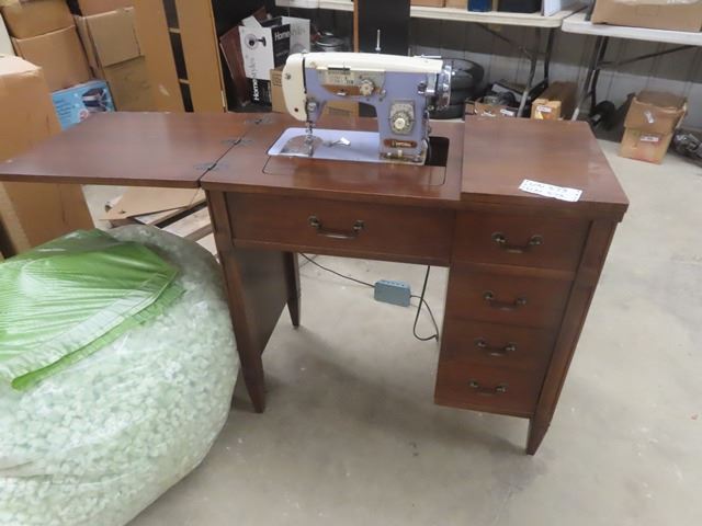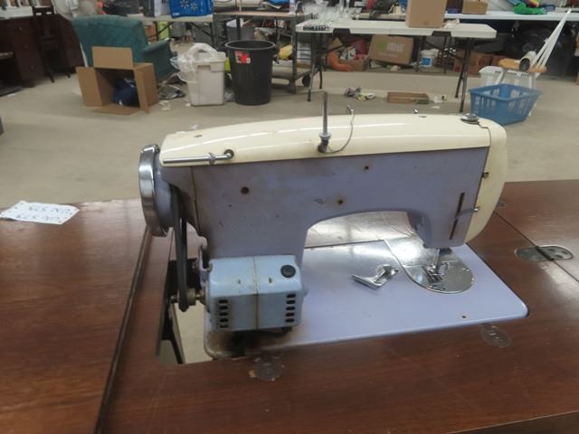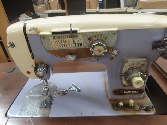 Imperial Cabinet Electric Sewing Machine- Wooden Cabinet + Machine in Ukranian Blue