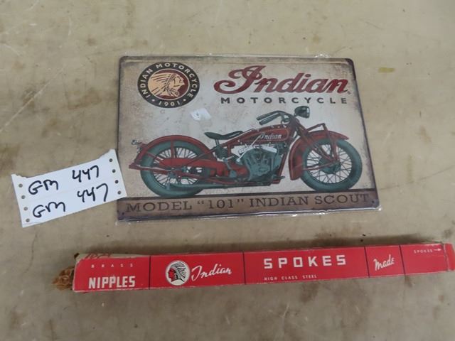 Indian Motocycle Wheel Spoke In Box and Modern Indian Motorcycle Sign