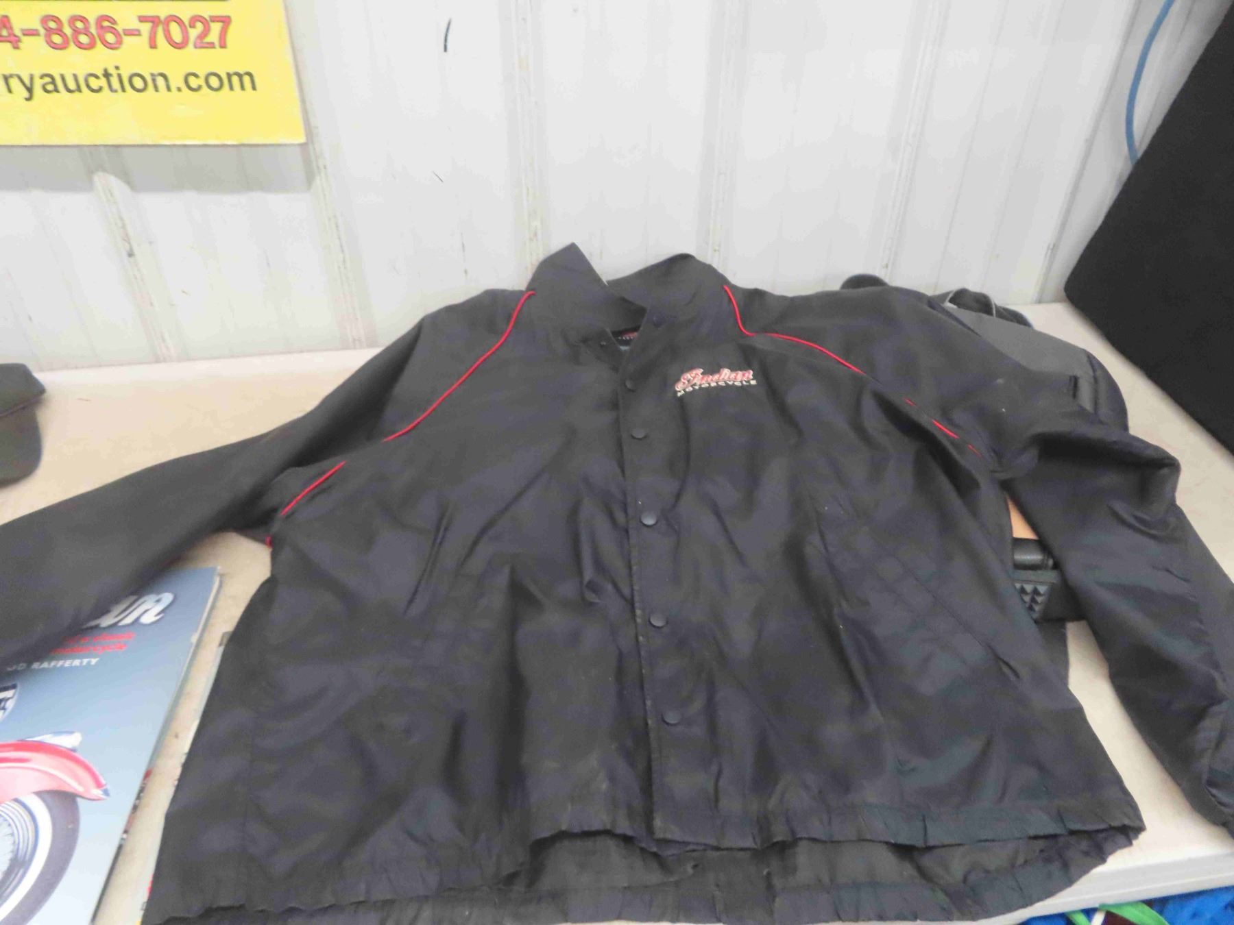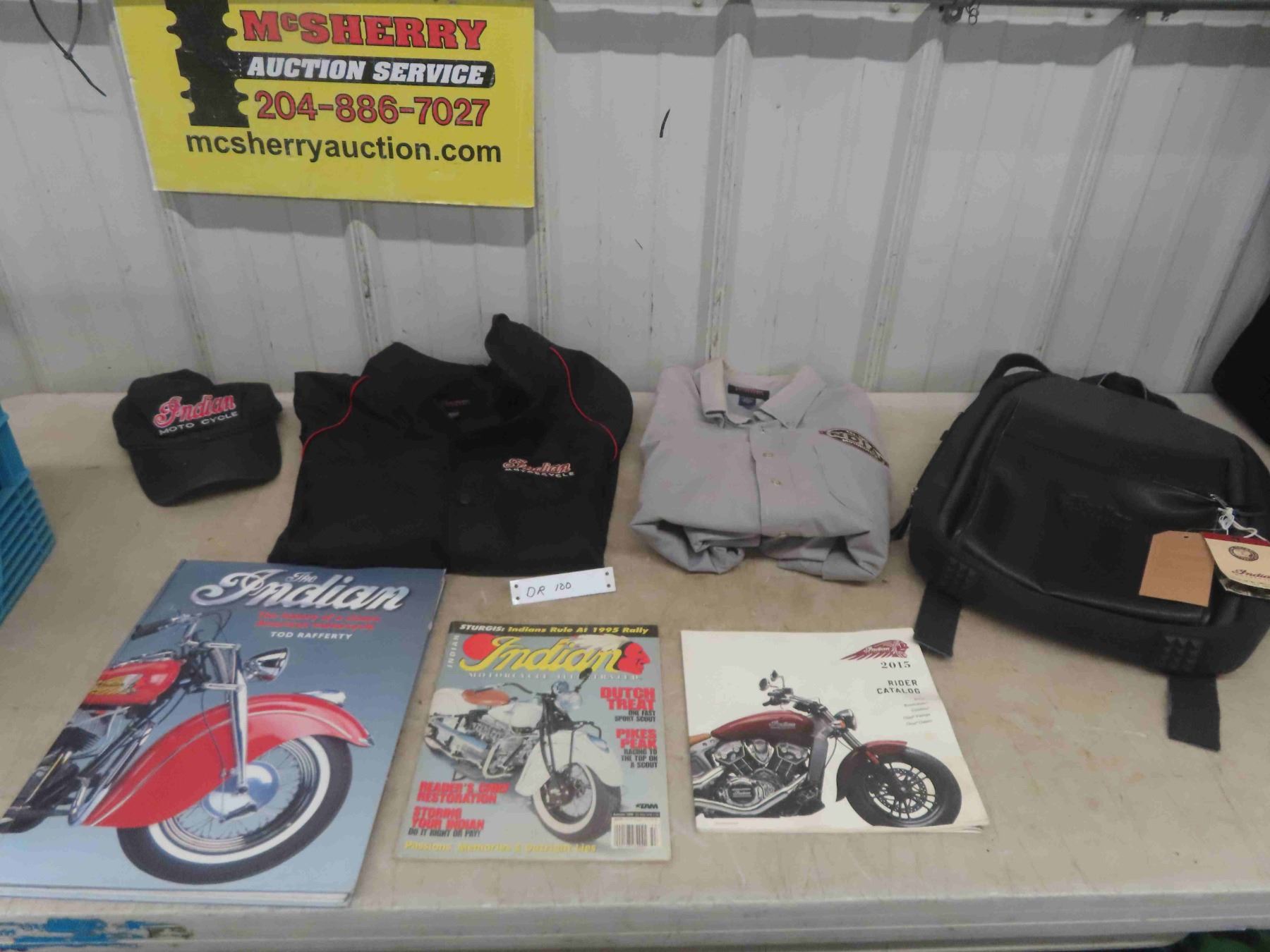 Indian Motorcycle Wind Breaker Sz 2XL, Long Sleeve Shirt Sz Lg, Ball Cap, New Leather + Fabric Back Pack, Book, Magazines