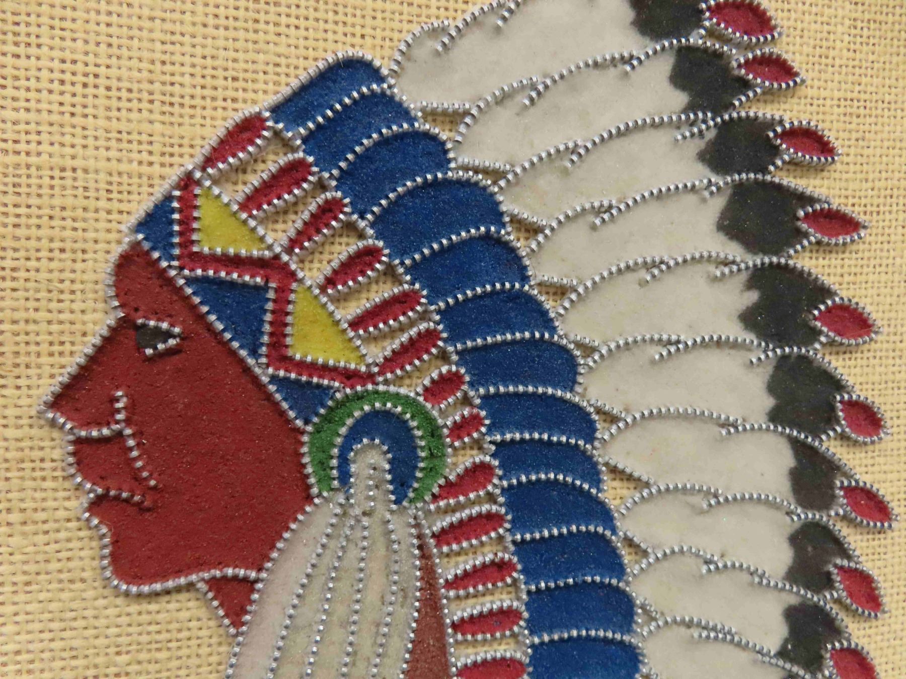 Indigenous Chief Sand Painting Outlined with Zippers 11.25'' x 15.5'' -Great Work From This Artist
