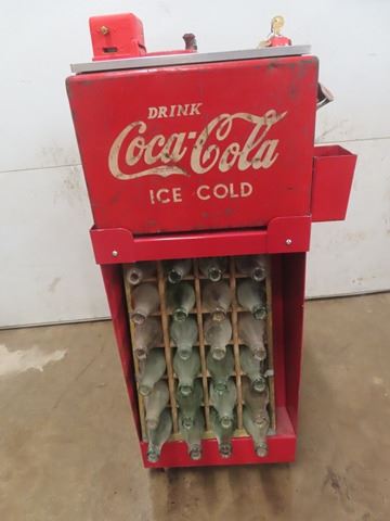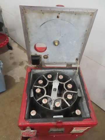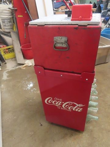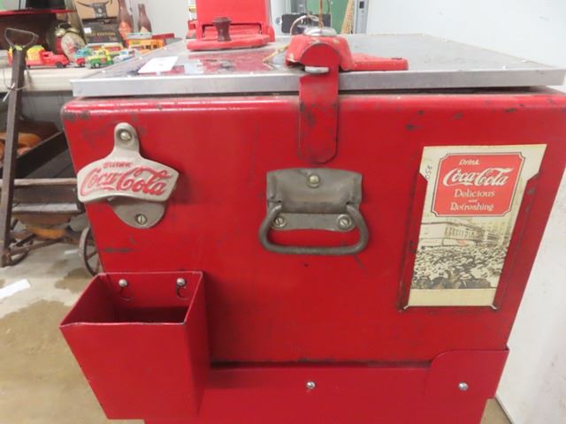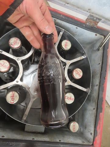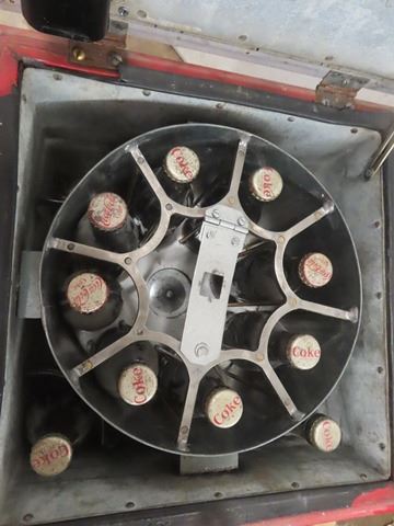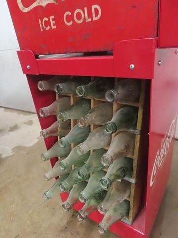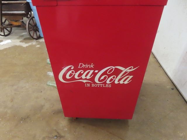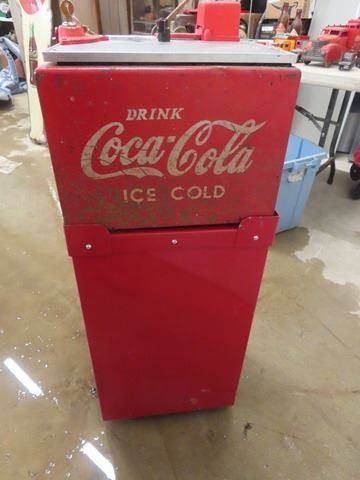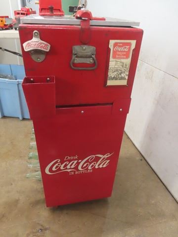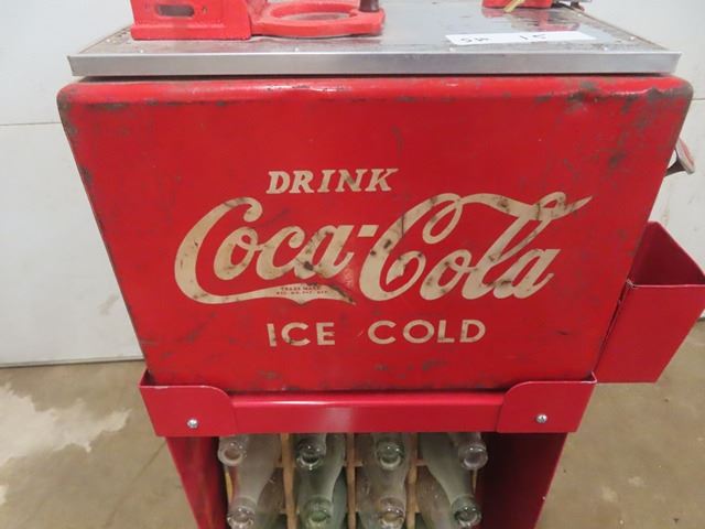 Industrial Cartoon Coolers Coca-Cola Cooler Model A-8 Serial # 331 with 10 Full Cokes + Wooden Carry Crate, 24 Bottles & Print Out Literature