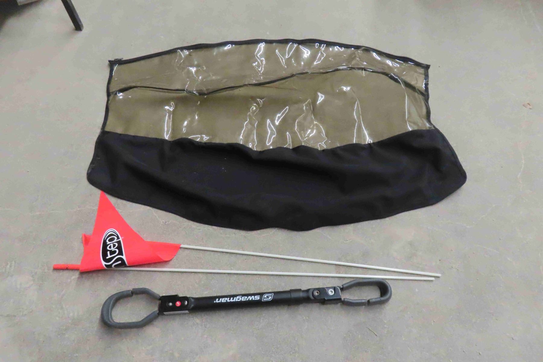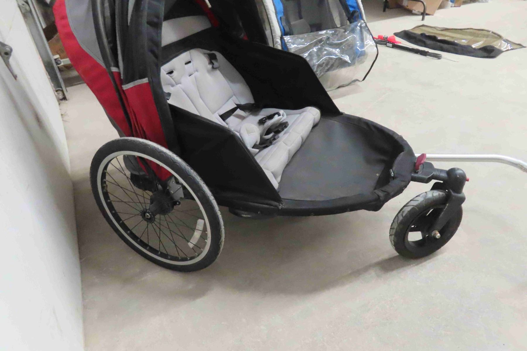 Instep Bicycle Pulling 2 Toddlers Cart with Flags & Rain Bonnet