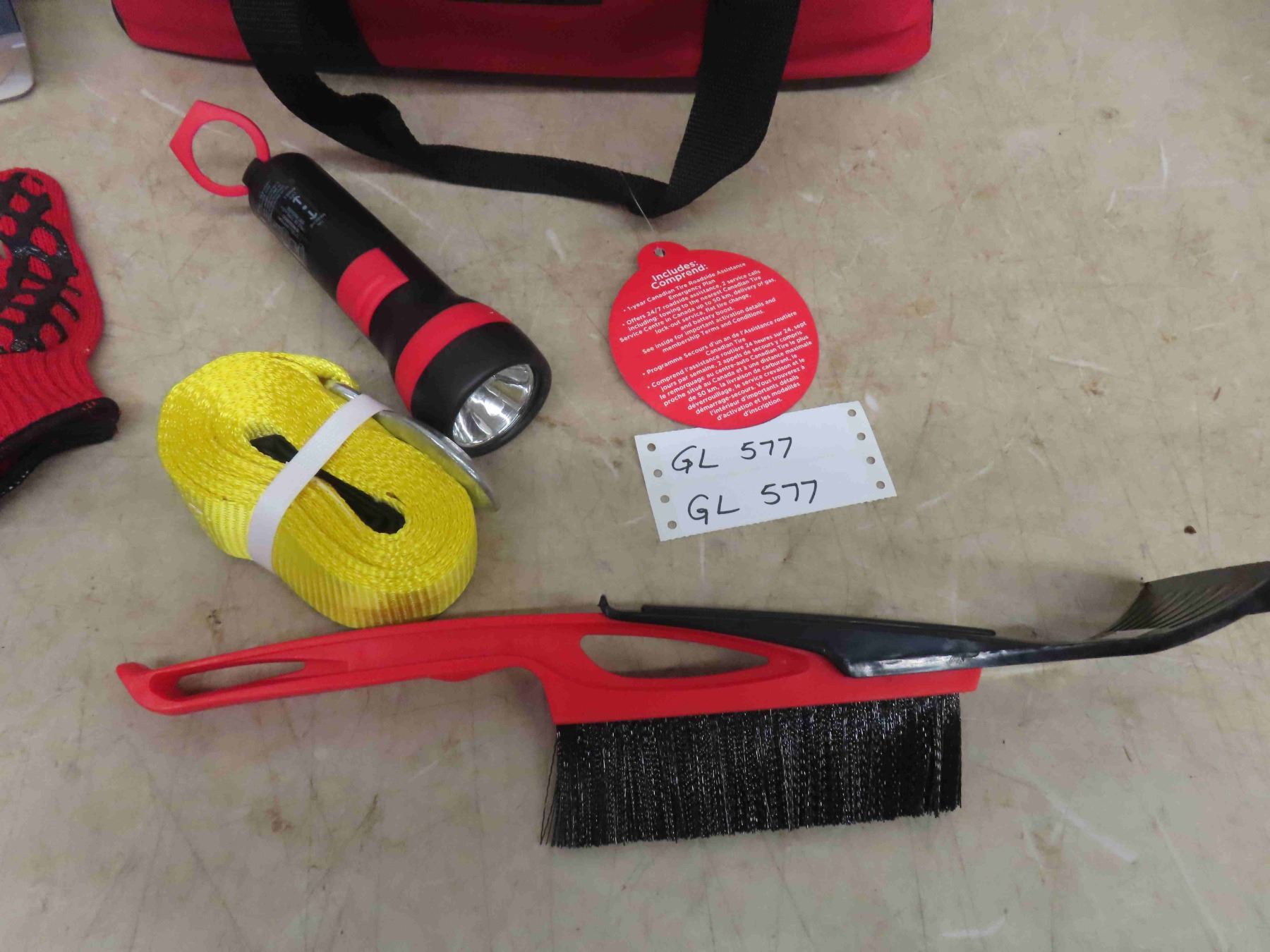 Insulated Soft Bag Cooler, Car safety Tote Includes ; Tow Rope, Snowbrush, Safety Triangles, plus more