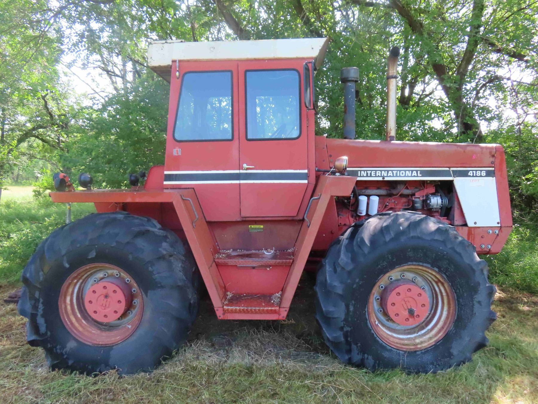 International 4186 Four Wheel Drive Tractor Standard High/Low Range 1000 PTO Dual Hydraulics Tires 23.1/26 Hours 6517 ; Serial# 2960417U018838 - Runs
