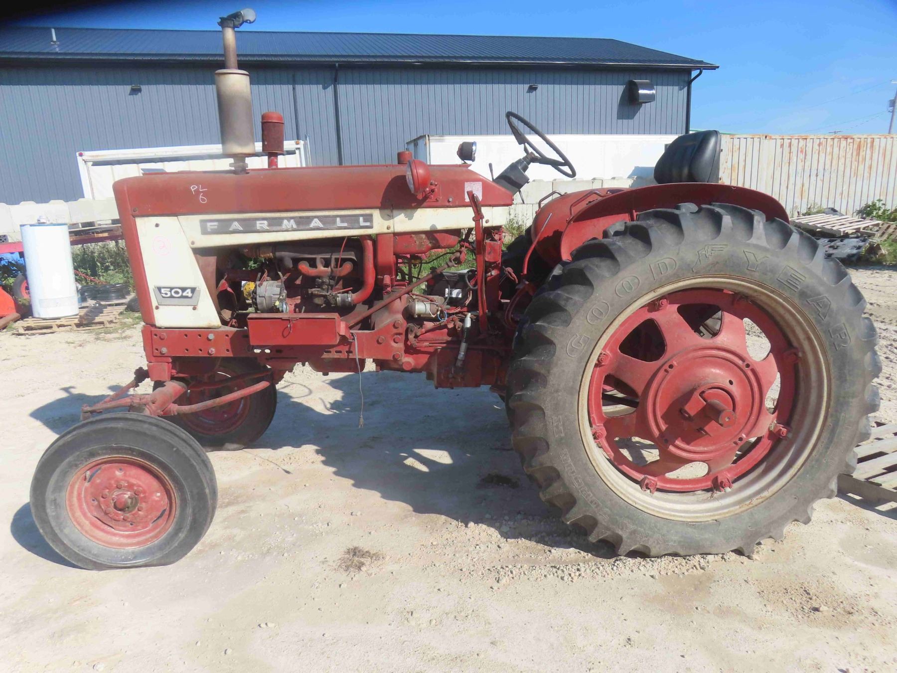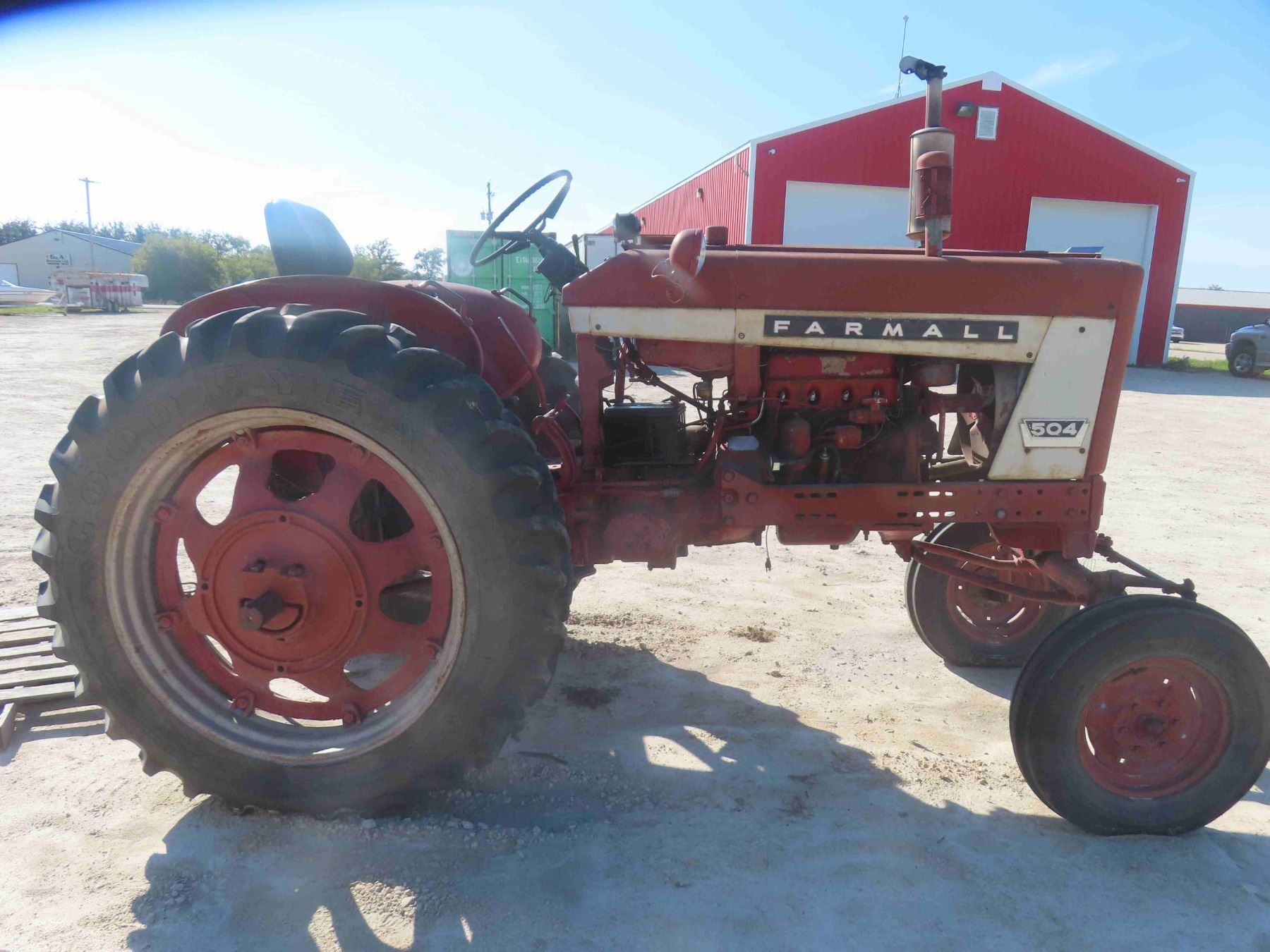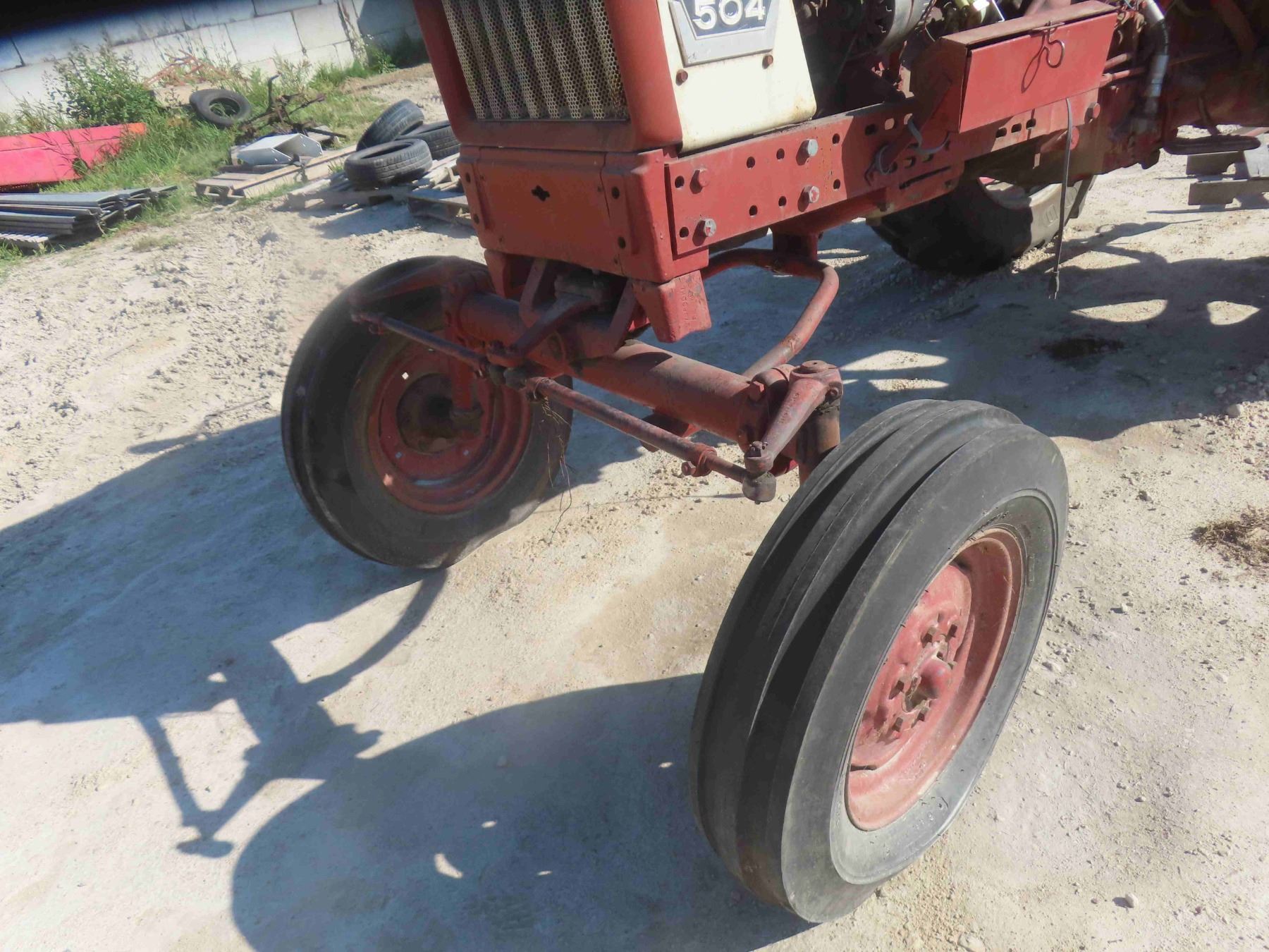International Farmall 504 Gas Dual Hydraulics 540PTO Adjustable Axle Good Rubber 13.6-38 Serial# 2479 - Stored Indoors , Tractor Engine Rebuilt 50 Hours Ago But Rear End is Locked Up - Estate Tractor