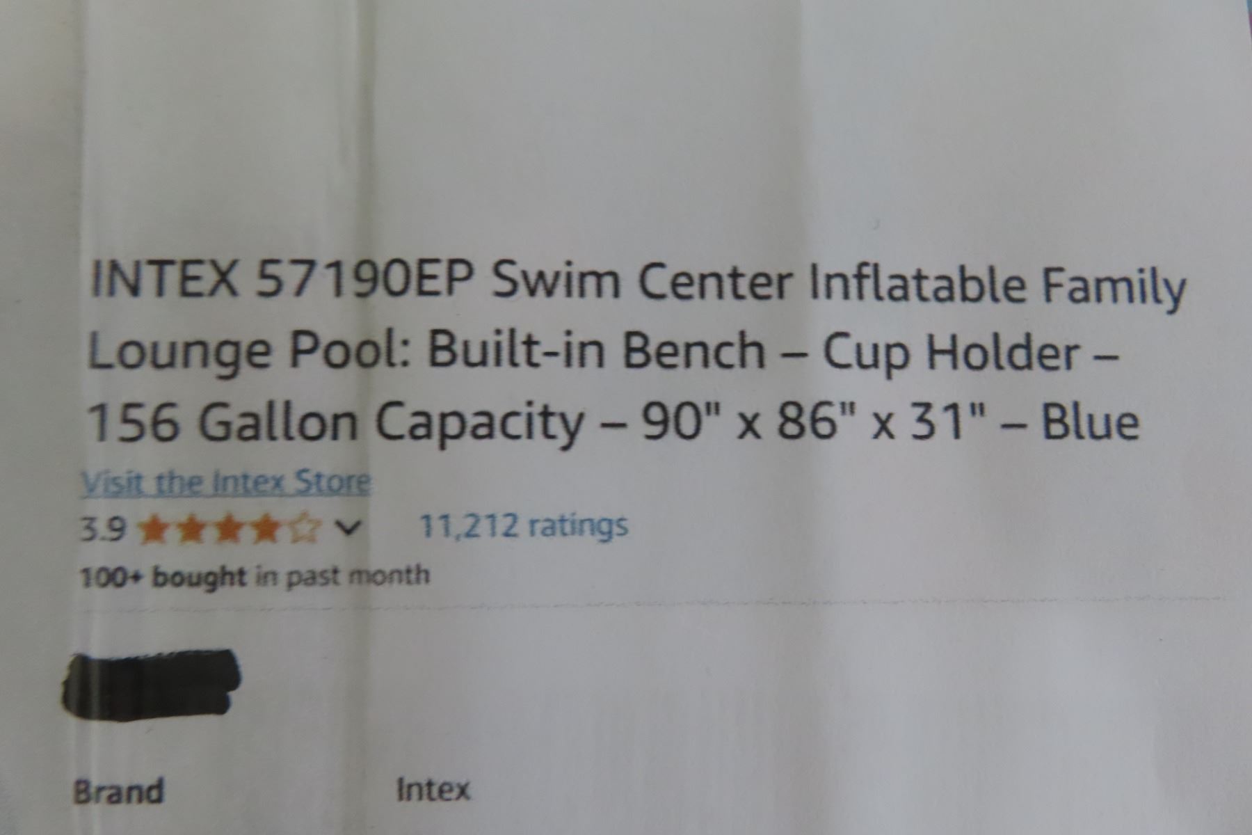 Intex Swim Center Inflatable Family Lounge Pool, Build In Bench & Cup Holder 90x86x31" New or Store Return