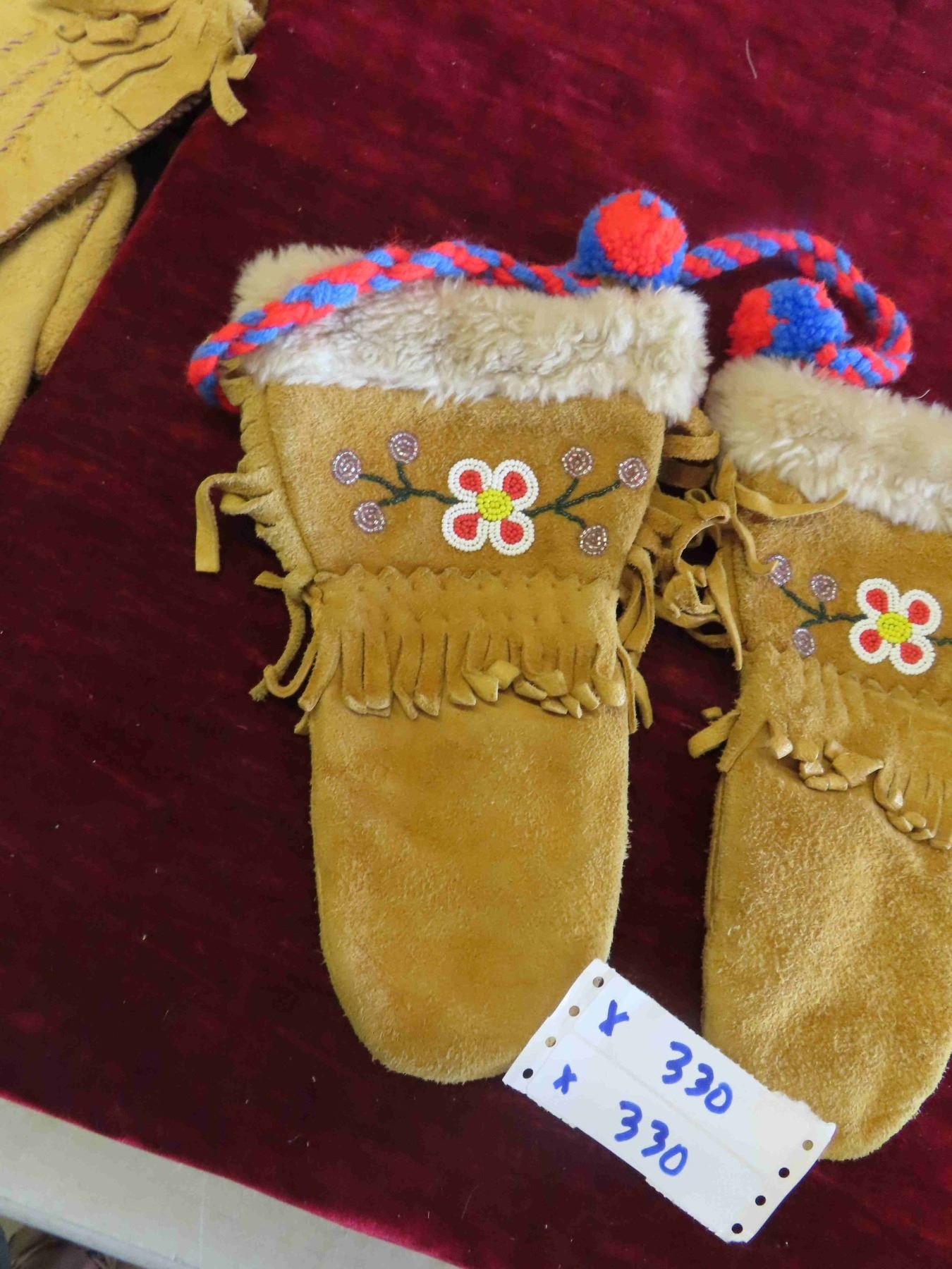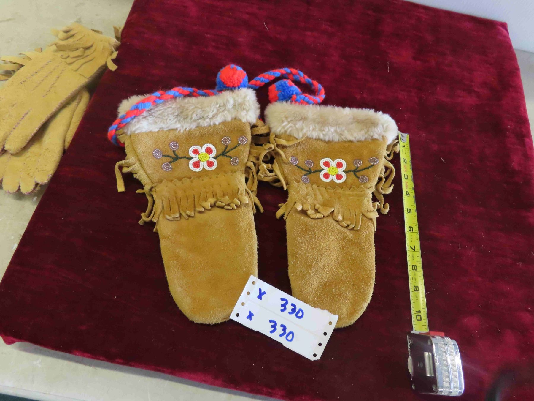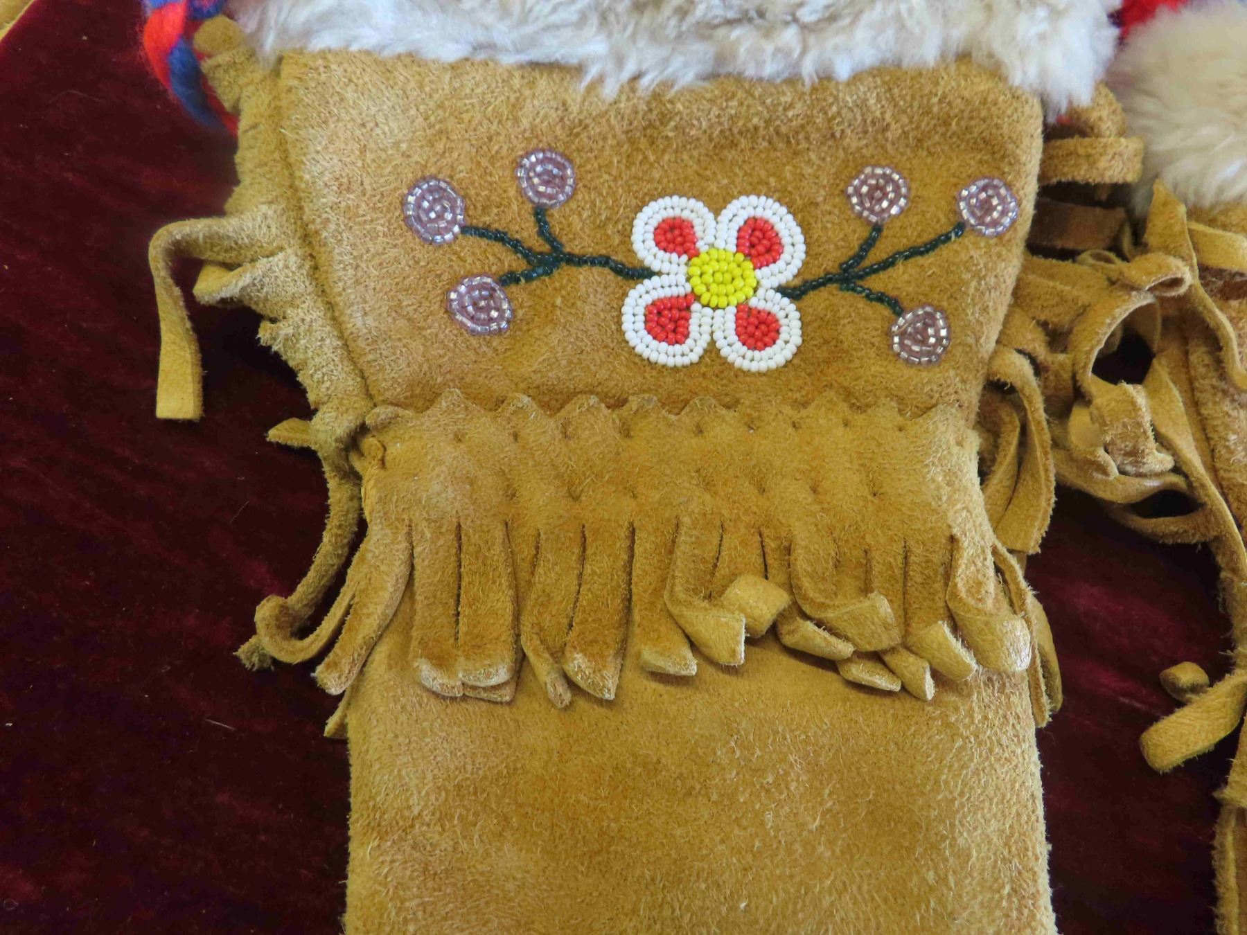 Inuit Hand Crafted Gauntlet Leather with Bead Work - Never Worn