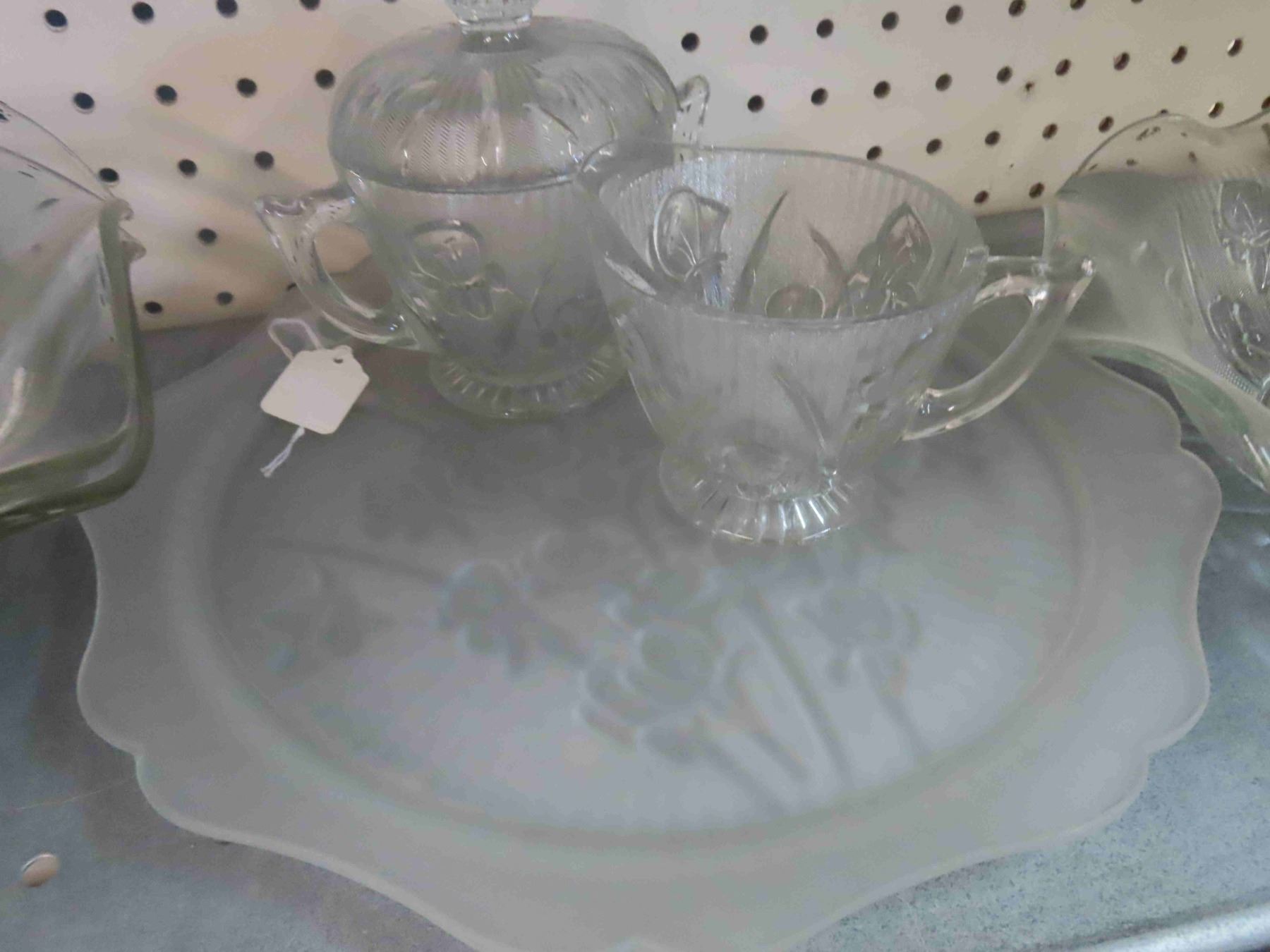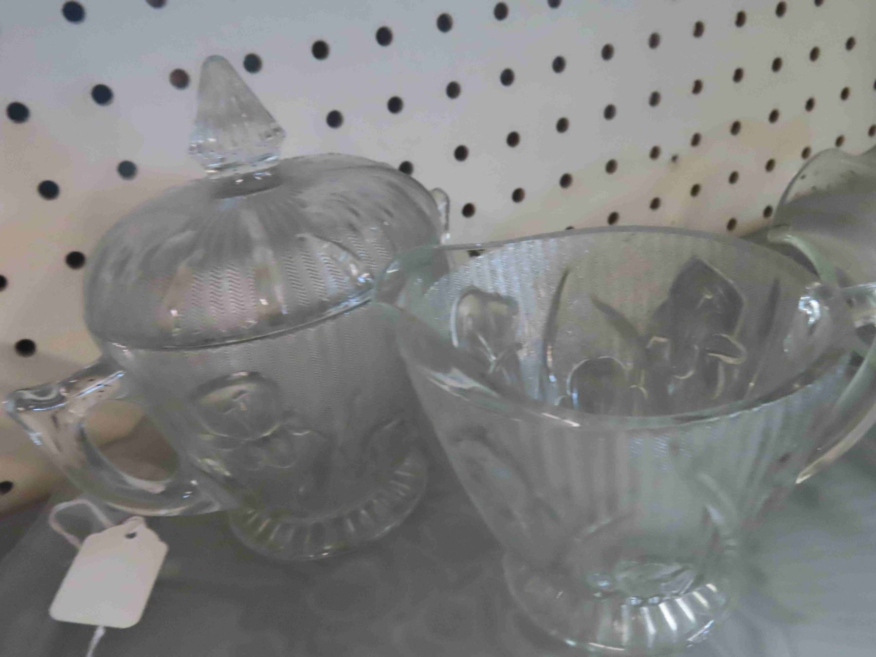 Iris Herring Bone ; 2 Pitchers, Bowl, Cream, Sugar & Other Cut Glass