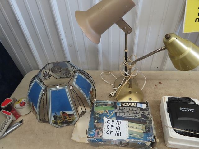 JD Lamp Shade , 2 Flex Lamps, Elec Heater, & Home Security