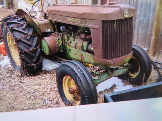 JD Mdl AR Tractor S# 283944 w V Style Snowblower Last Time Running was 3 Years Ago- Carbureator Missing - From Estate Please contact For Viewing 204-232-4107- Located in East St Paul