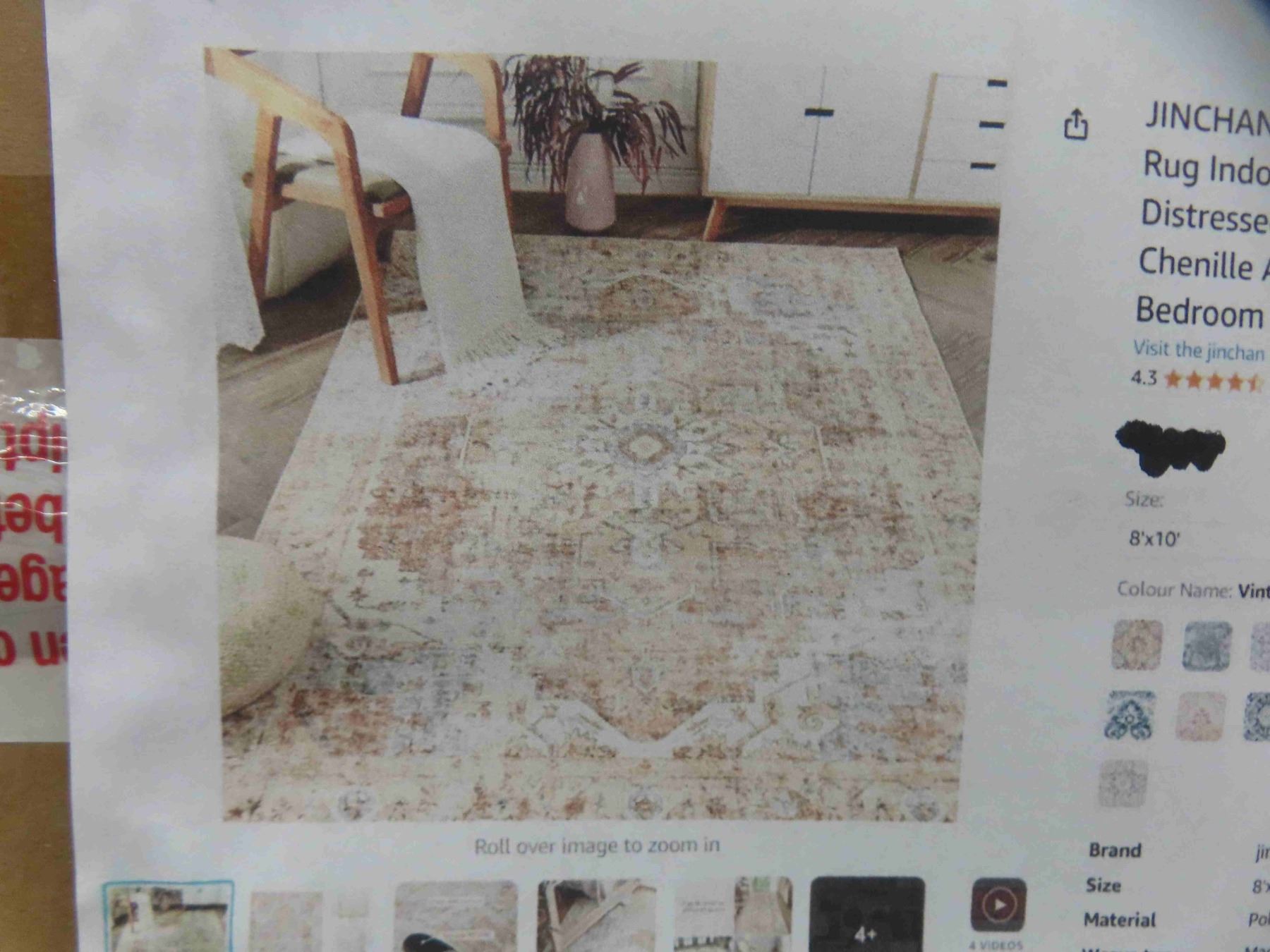JINCHAN area rug 8x10 large livingroom rug indoor washable floow cover print distressed vintage carpet brick red multi thin chienielle accent mat lightweight kitchen bedroom dining room, new or store return