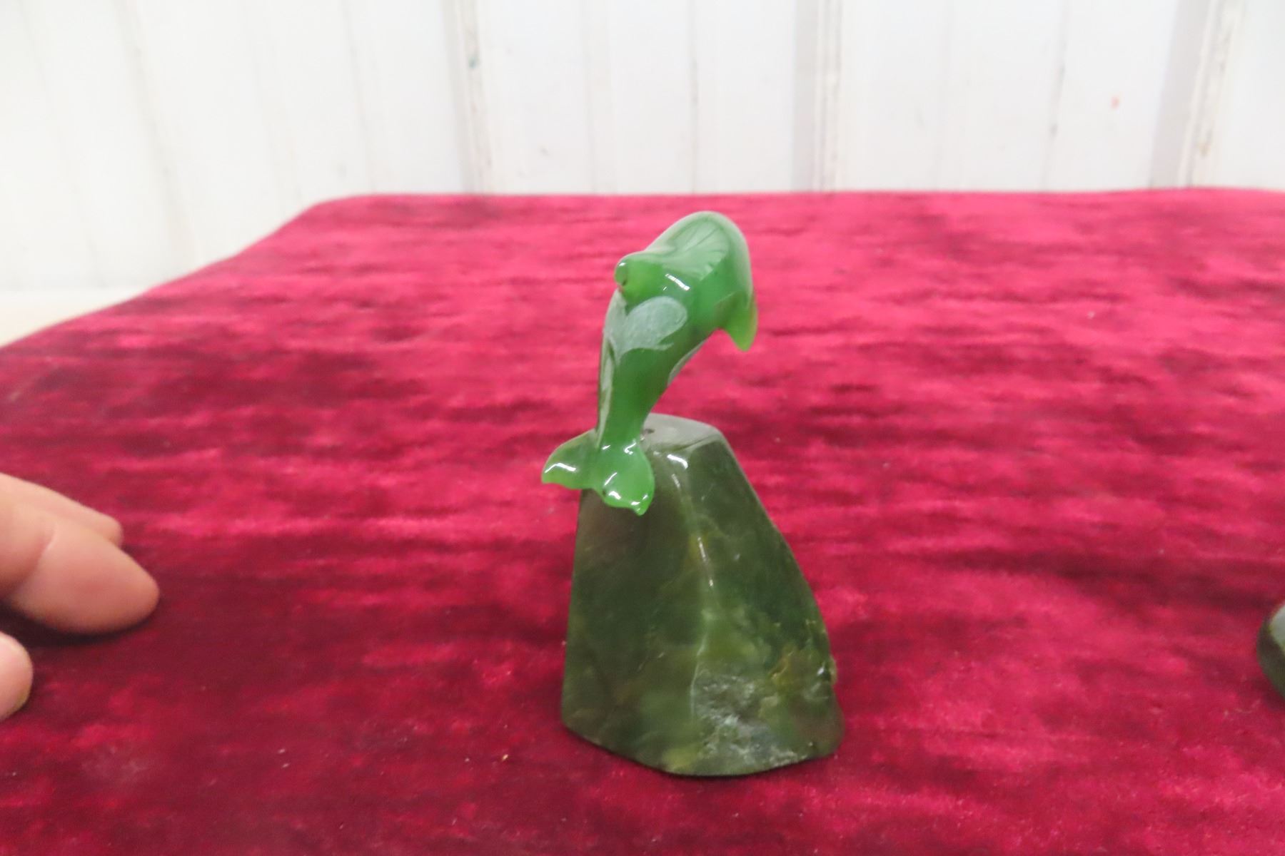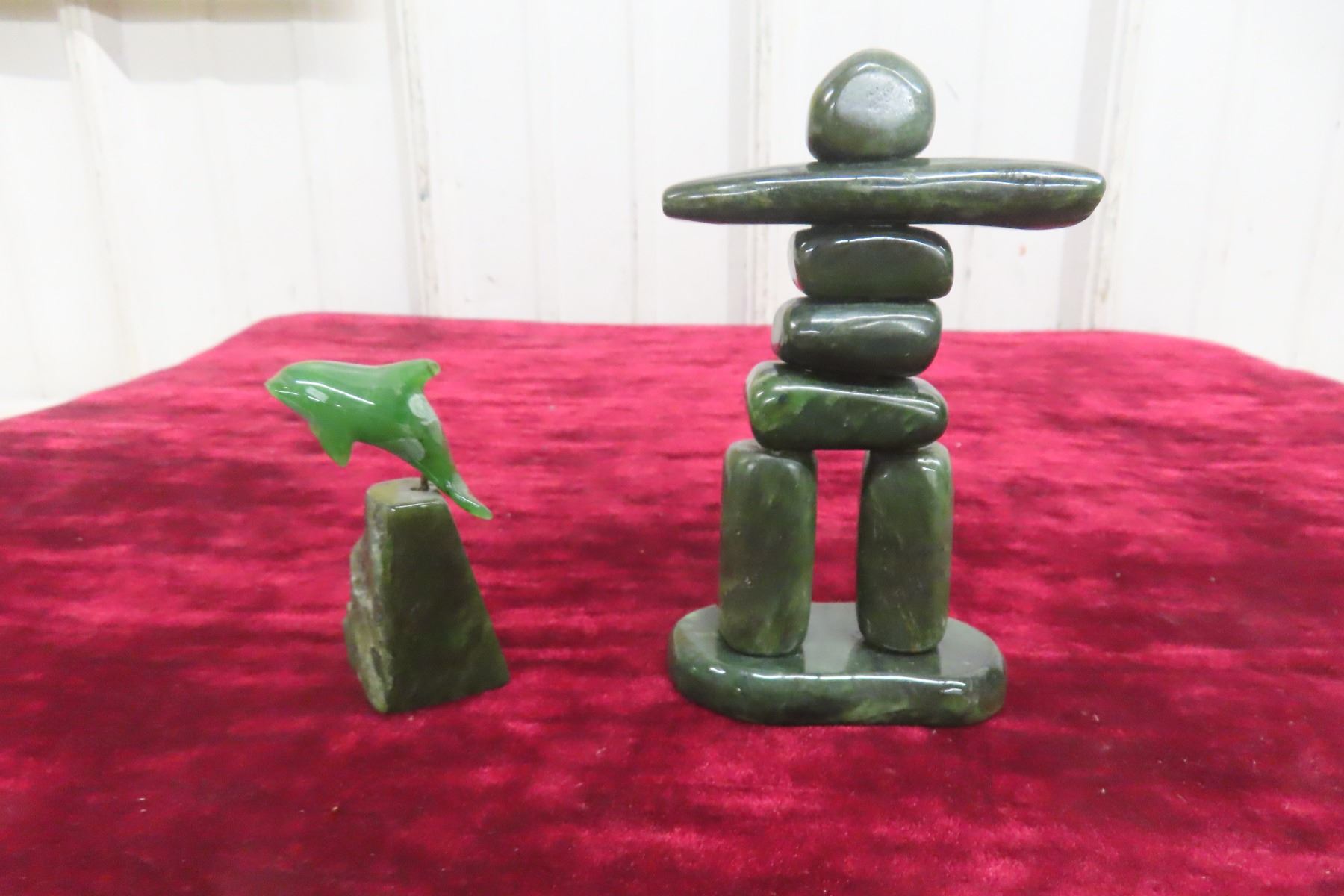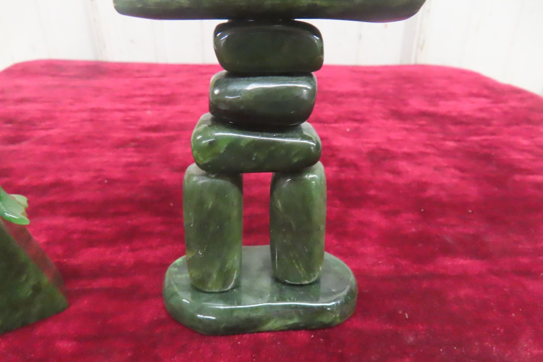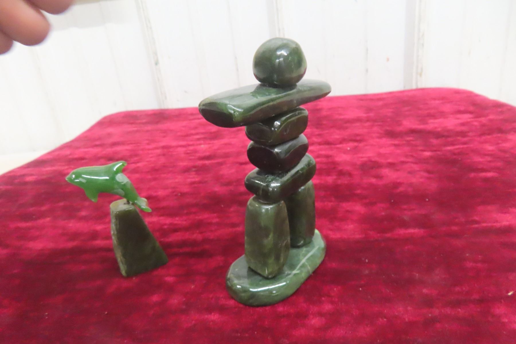 Jade Inukshuk Carving Display 5 1/2" Tall and Jade Whale