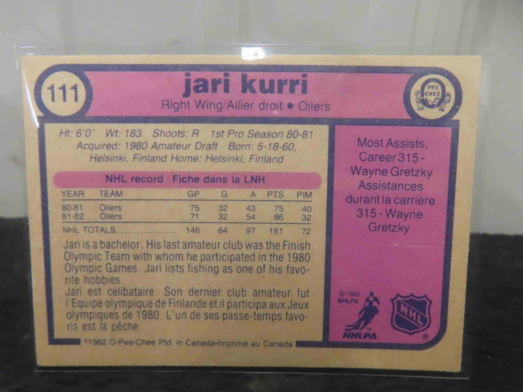 Jari Kurri Edmonton Oilers Card