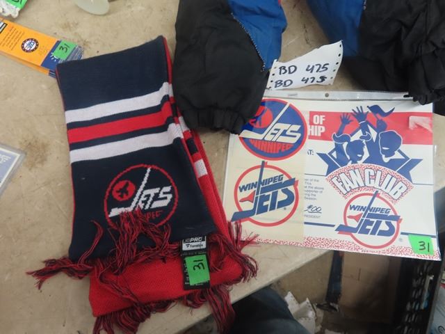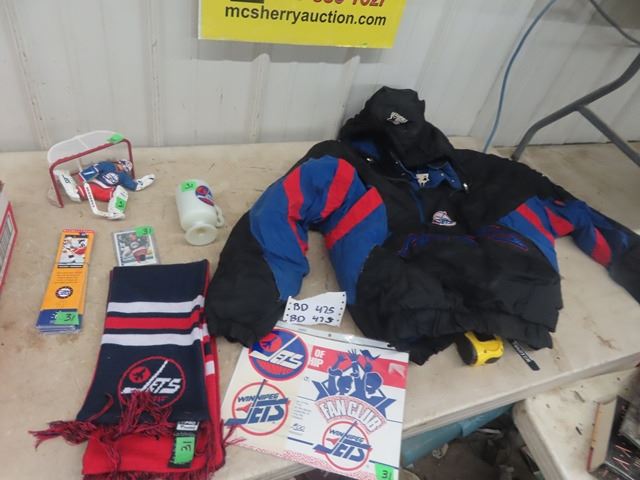 Jets Lot #2, Vintage Pullover Winter Jacket-Lg, Signed Selanne Hockey Card, Framed Poster, Scarf, Mu