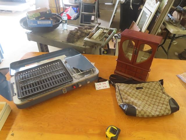 Jewlery Case, Gucci Hand Bag & Propane Camp Stove