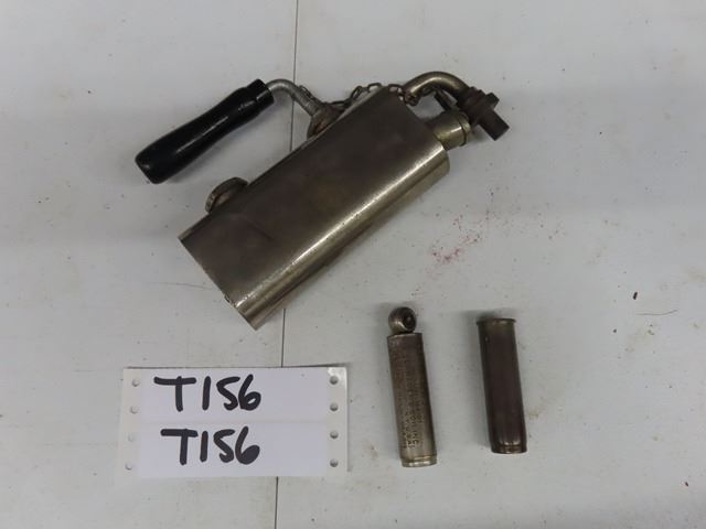 Jim Dandy Blowtorch Untested Approx. 7 " Tall Lasher-Weeber Co. Pat. 1928. Included are 2 Antique Vintage Schrader Tire Pressure Gauges- 1 for Balloon Tires
