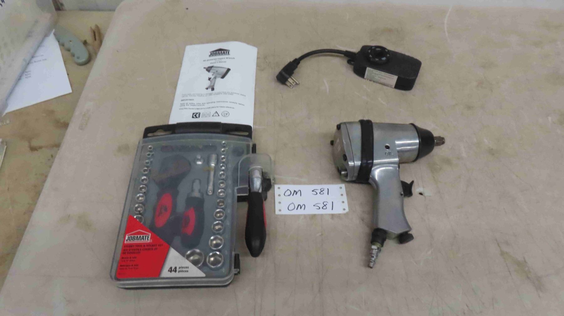 Jobmate Air 1/2" Impact Wrench, 44 pc Stubby Tool + Socket Set, Timer