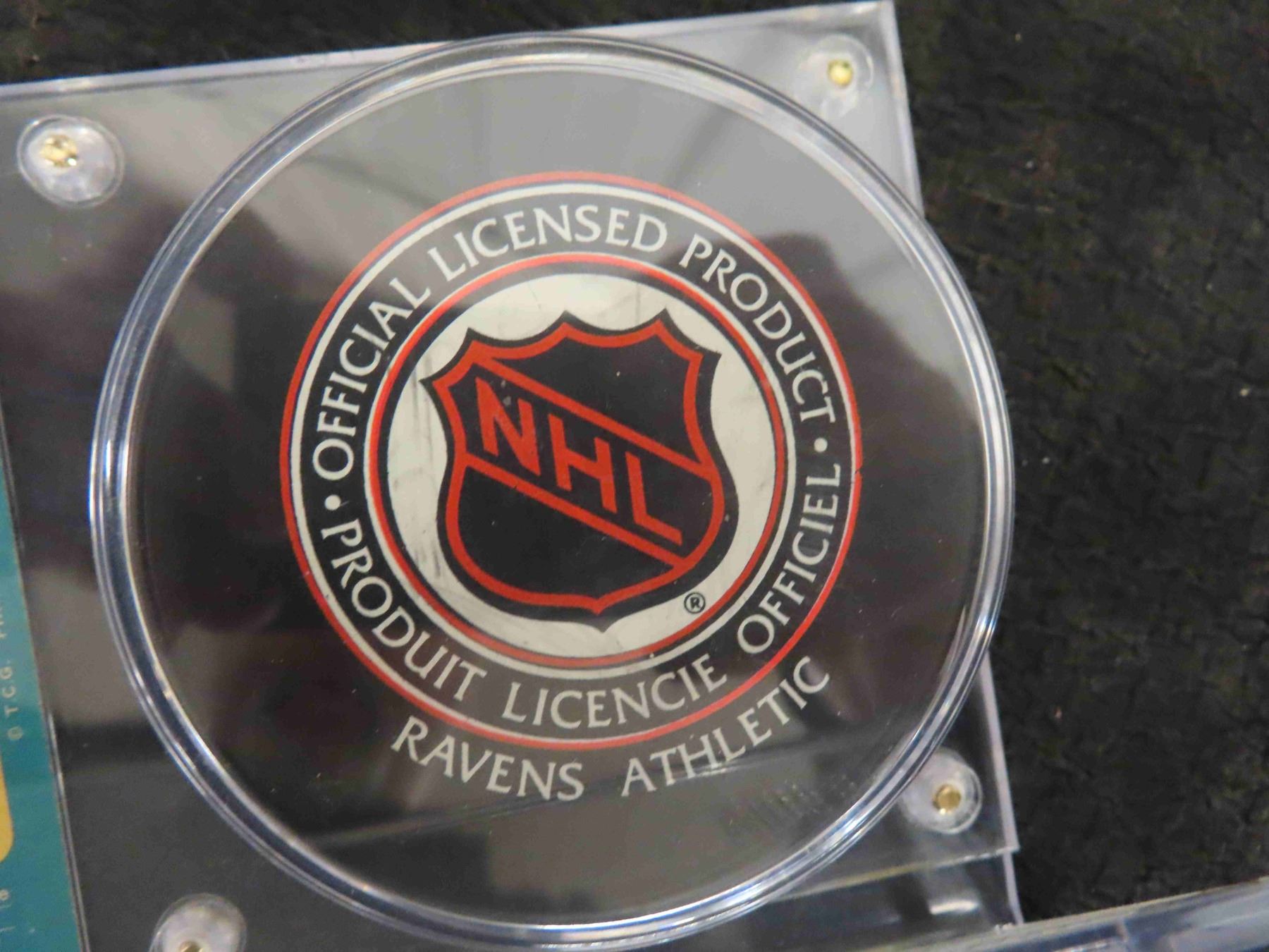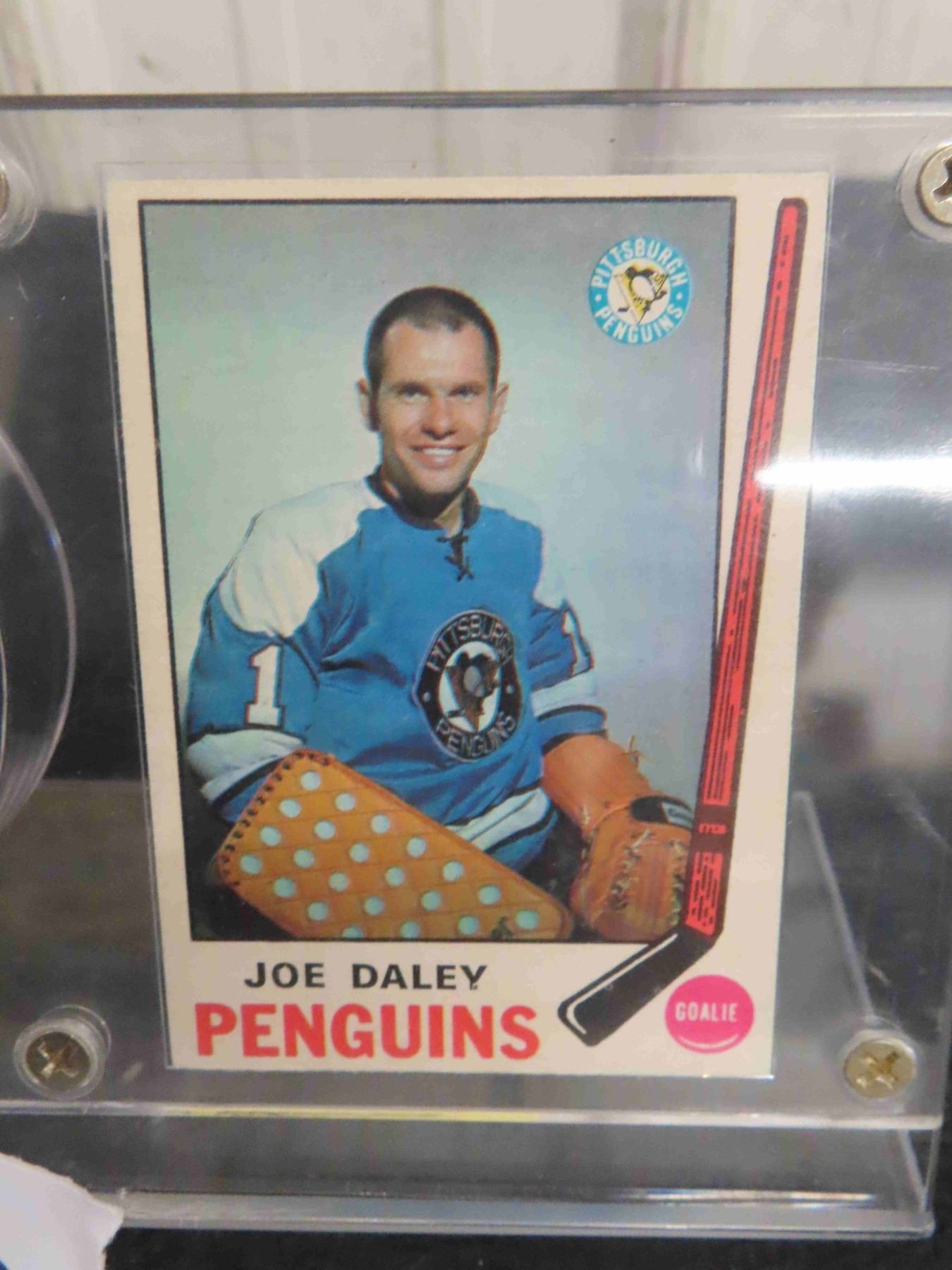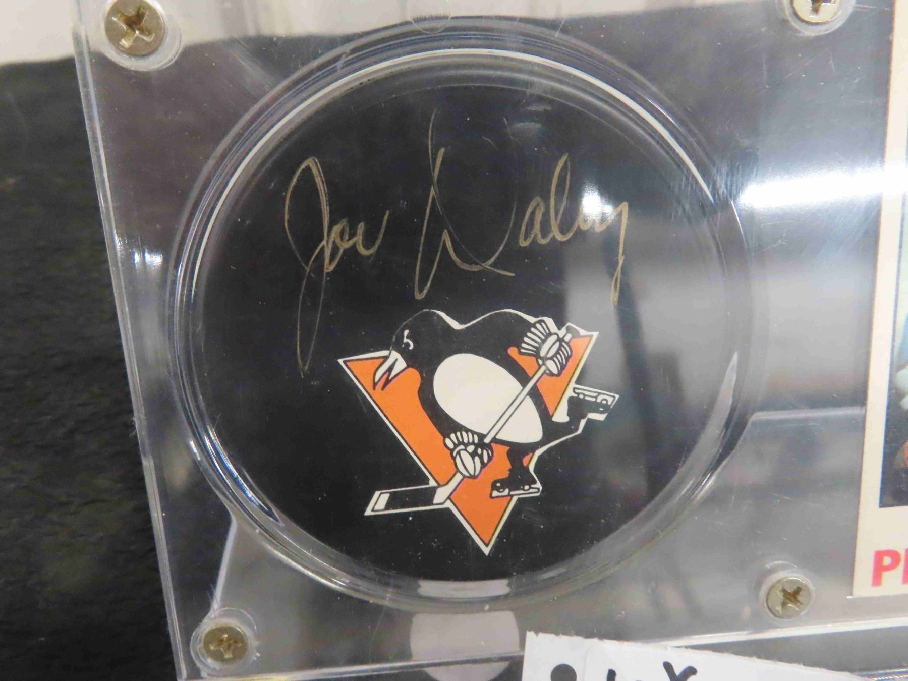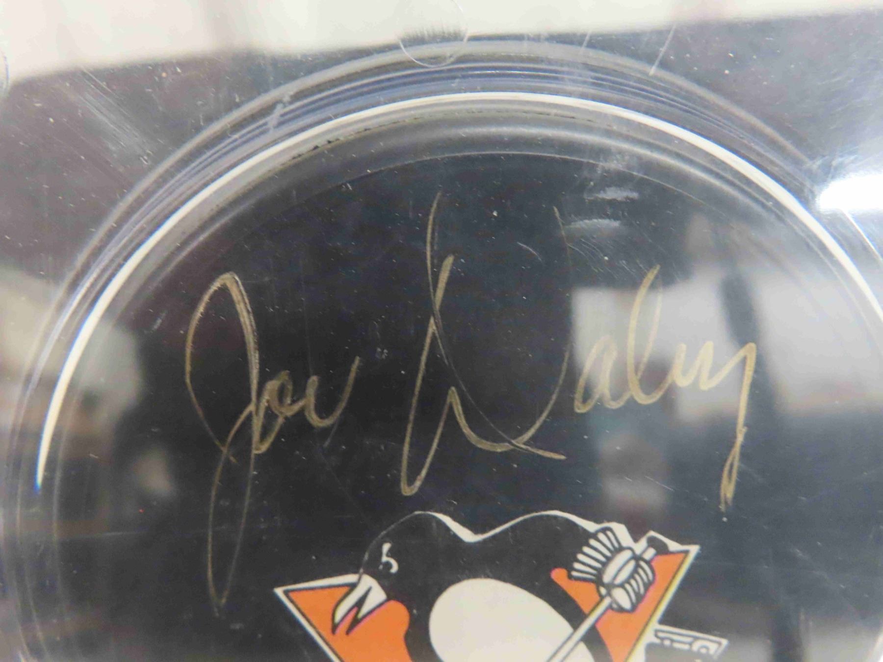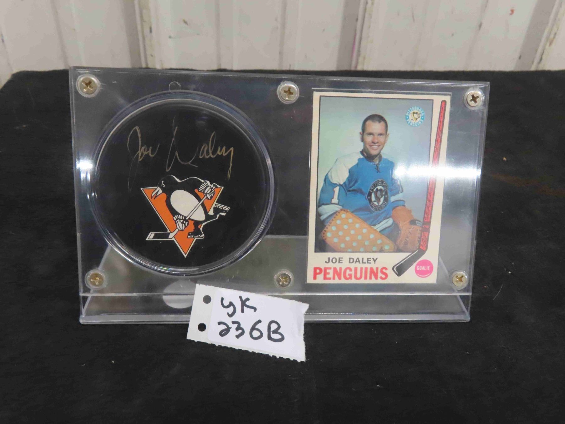 Joe Daley Autographed Penguins Puck with Card in Display