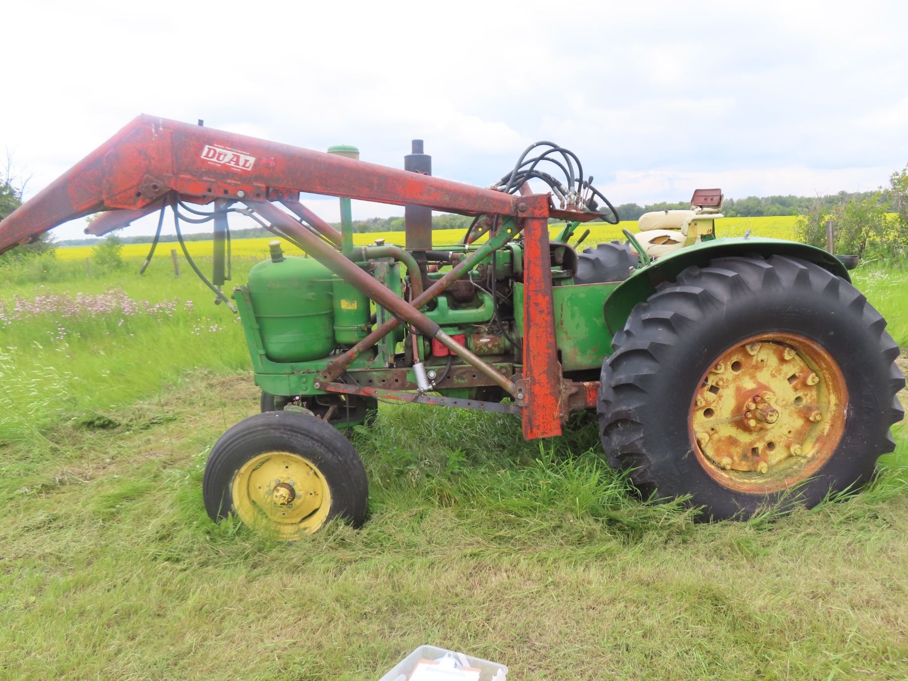 John Deere 3020 Tractor Standard Transmission, 540/1000 PTO , Dual Hydraulics, Good Rear Tires 18.4-30 , 7489 Hours ; Serial # T123R 107329R , with Dual Front End Loader - No Bucket, Engine Siezed