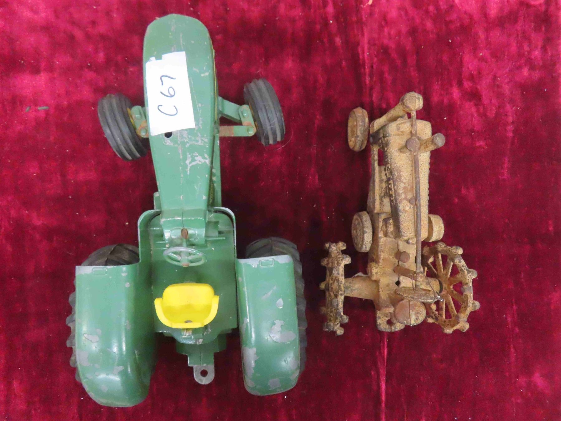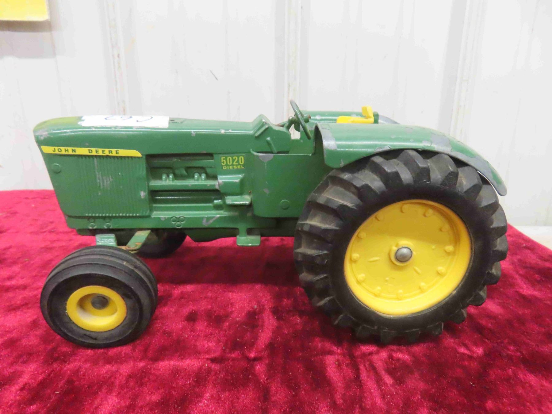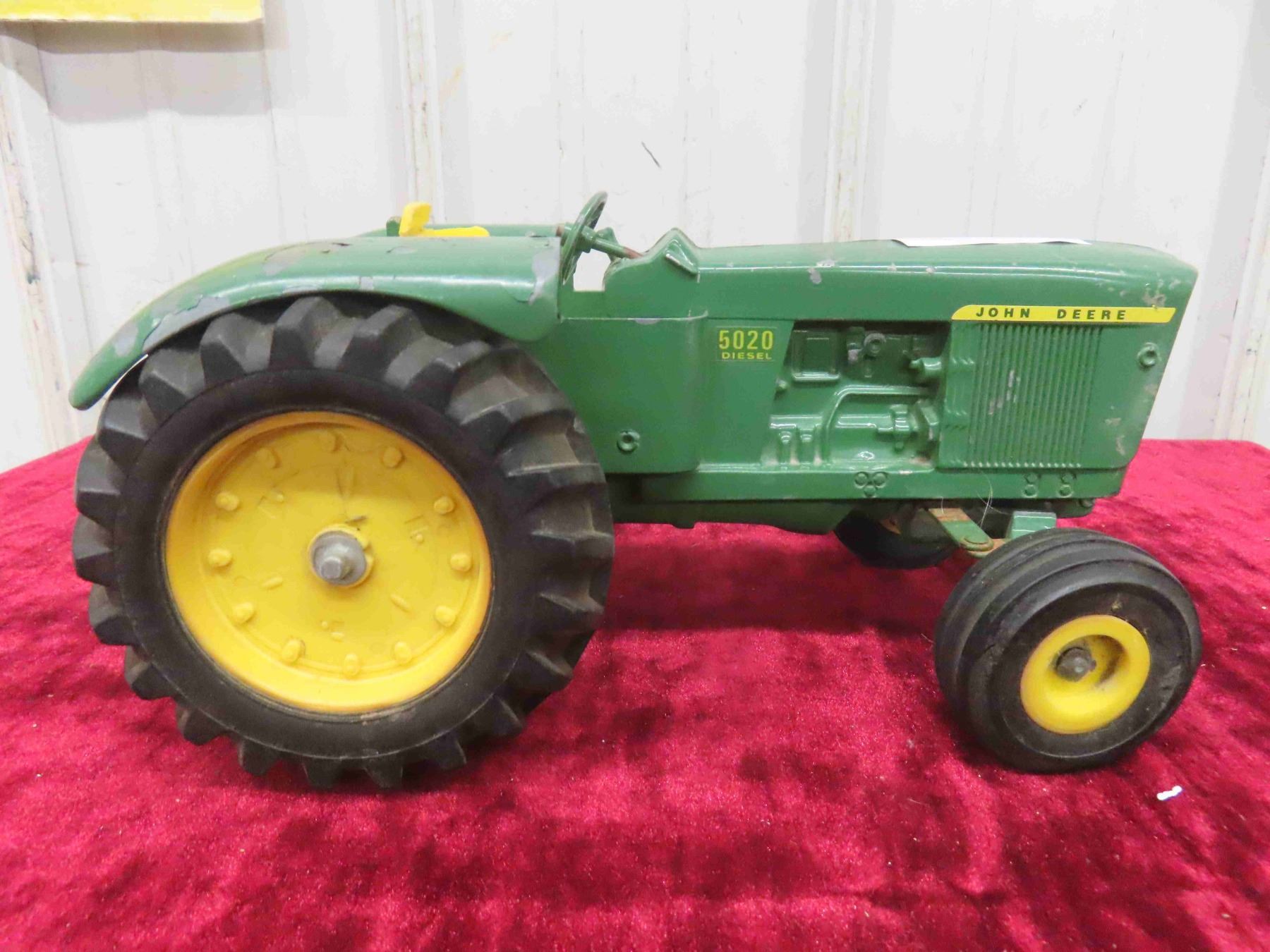 John Deere 5020 Diesel Die Cast Metal Tractor 5" x 6.25" x 11" & cast john Deere Tractor with Steel Wheels 4.5" x 4.75"x 8"
