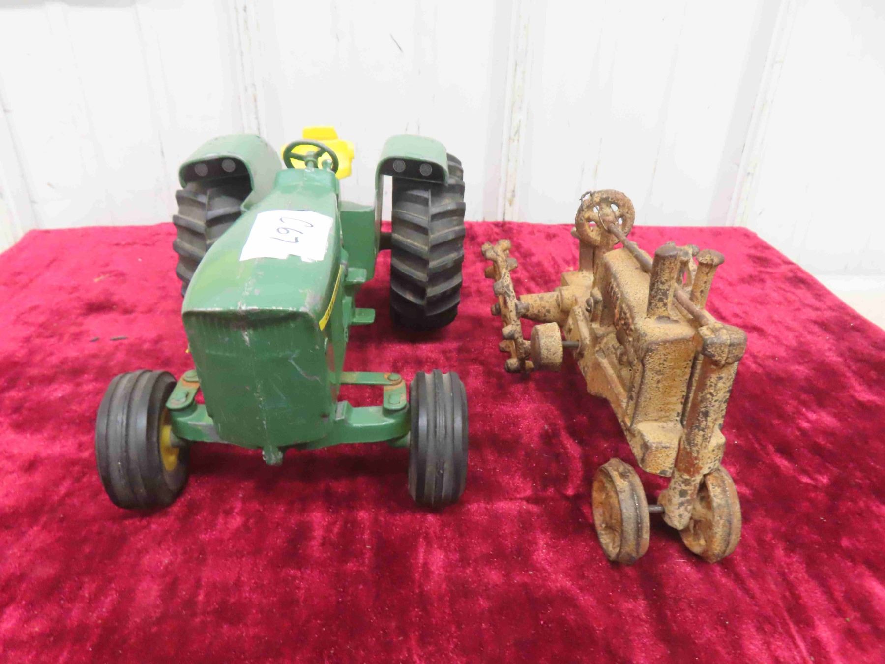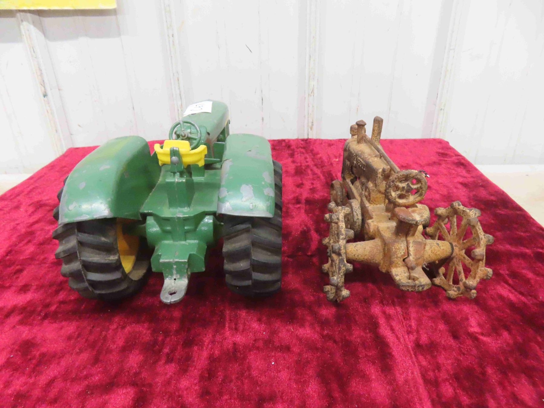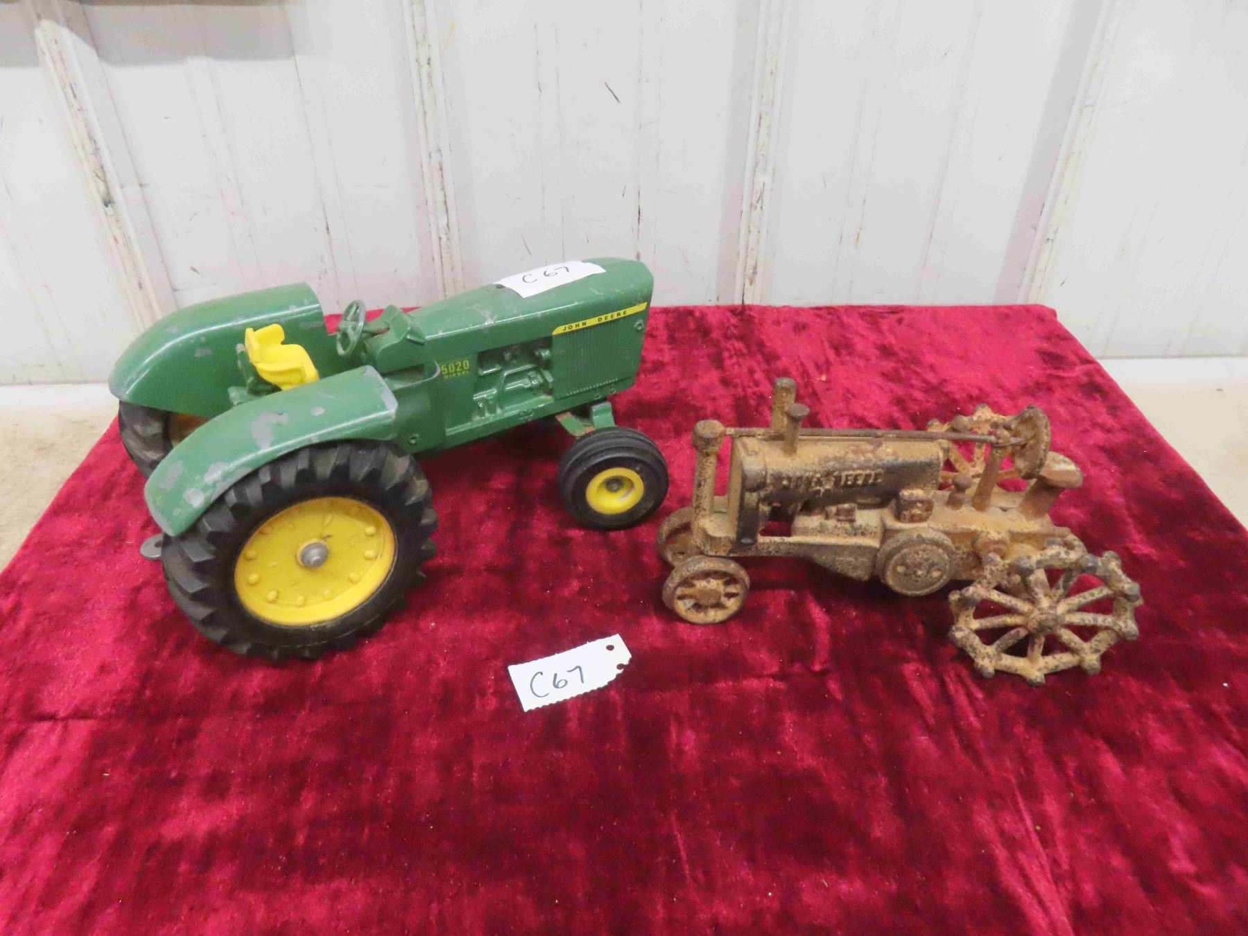 John Deere 5020 Diesel Die Cast Metal Tractor 5" x 6.25" x 11" & cast john Deere Tractor with Steel Wheels 4.5" x 4.75"x 8"